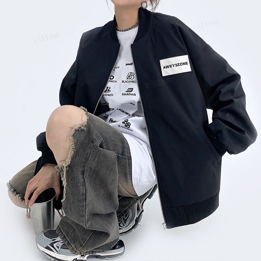 韓国っぽなラベルデザインがポイントのオーバーサイズMA-1ブルゾン♡
