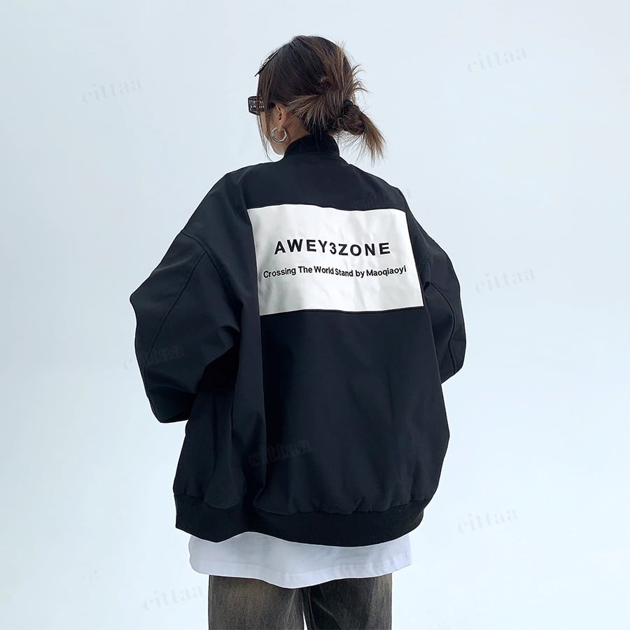 ★予約★【早割限定特典10%OFF】C-126 2025秋新作♡AWEY3ZONEラベルデザインMA-1ブルゾン ブラック 【L】