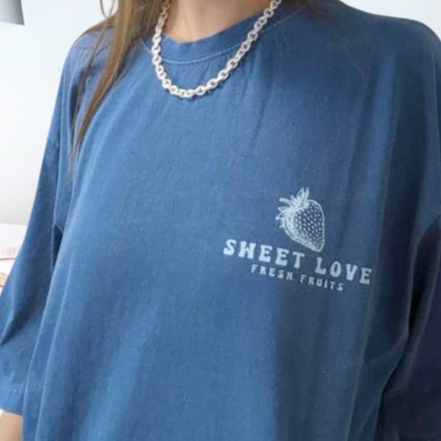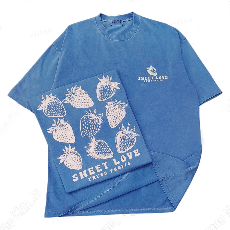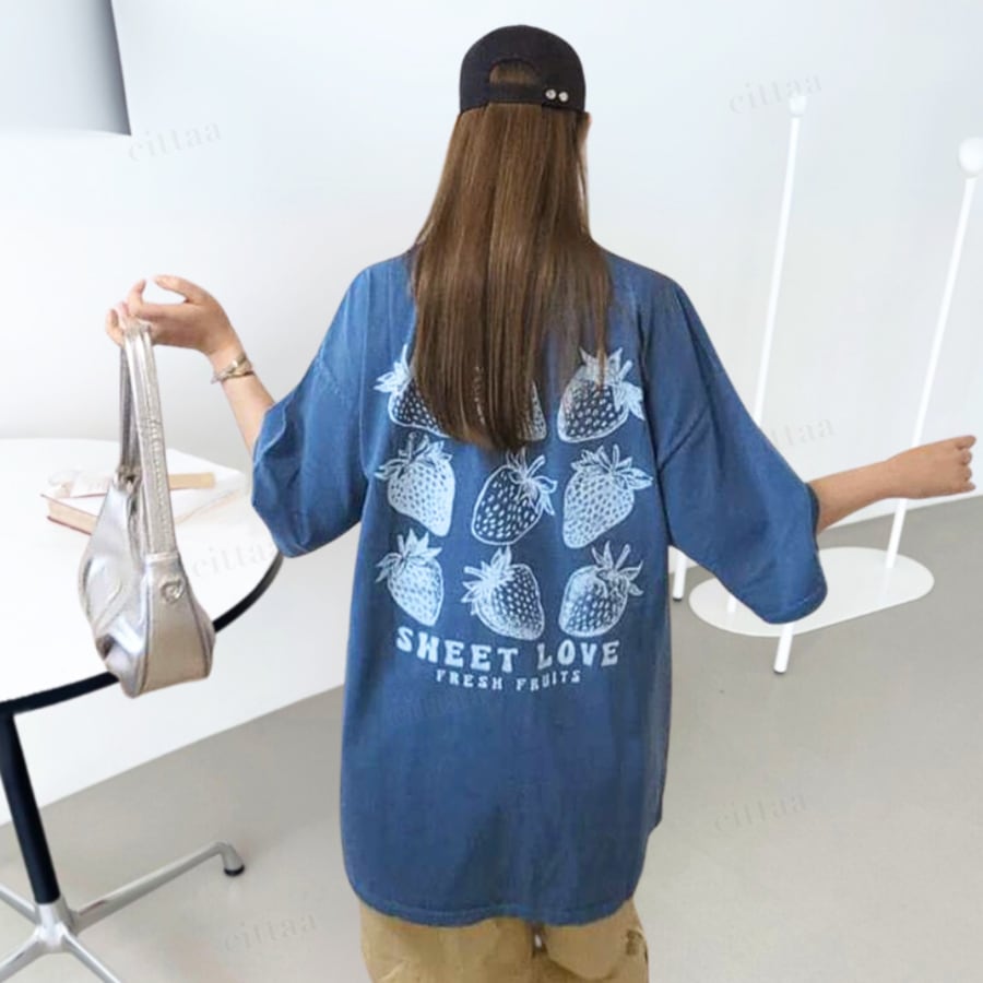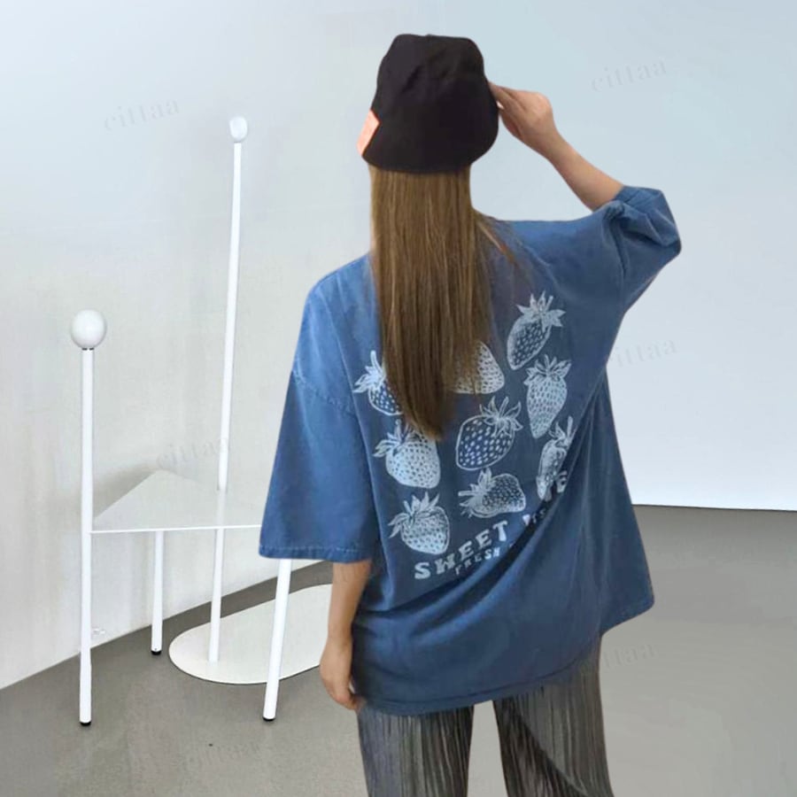 古着のような風合いがお洒落なストロベリープリントTシャツ♡