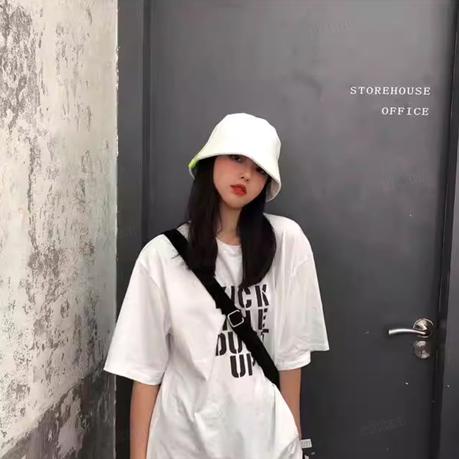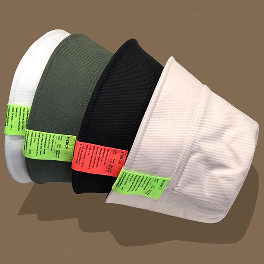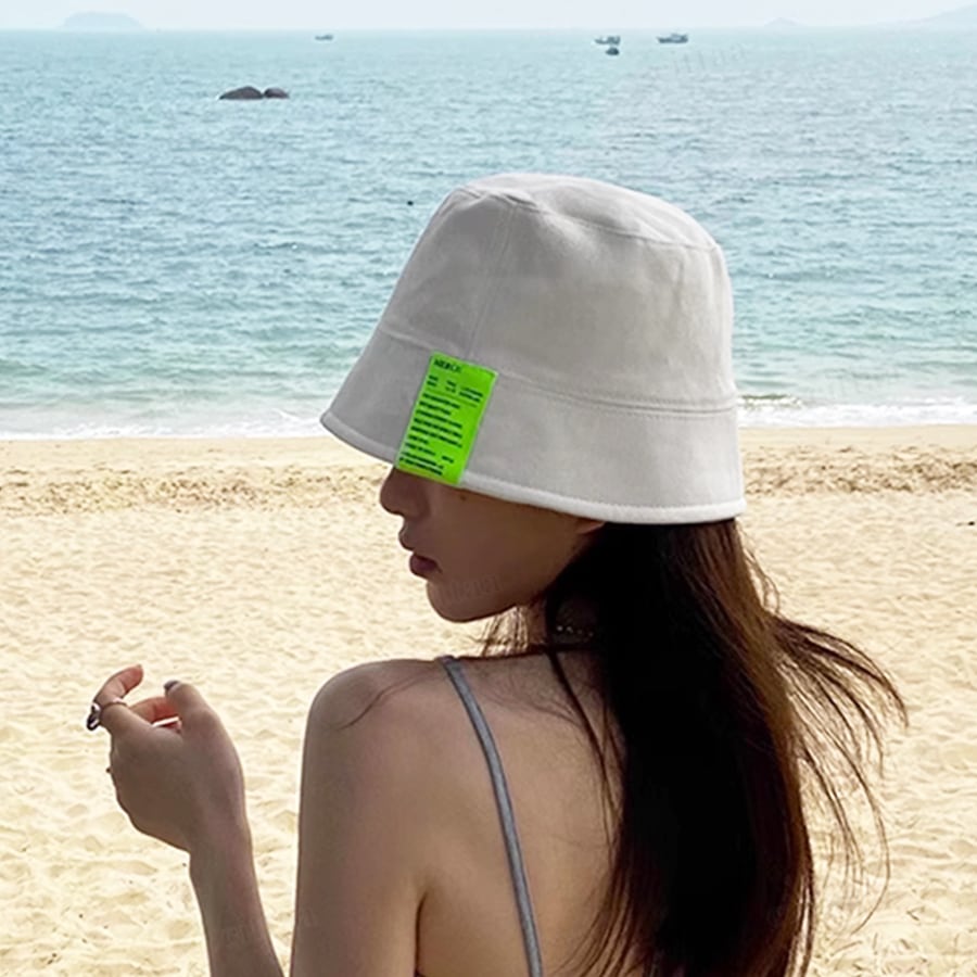 【返品不可】★訳ありアウトレット商品★C-143 2025春新作♡ネオンカラーラベル付きバケットハット ホワイト