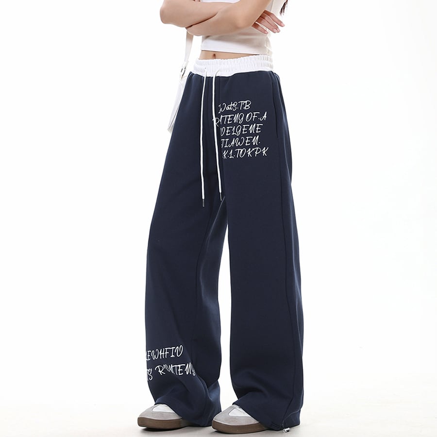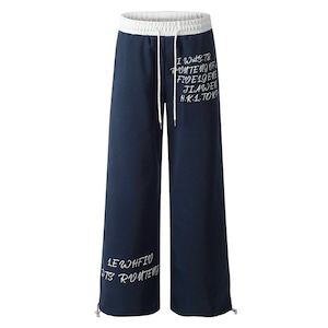 C-279 2025秋新作♡【2way】英字ロゴ配色スウェットワイドパンツ ネイビー 0630