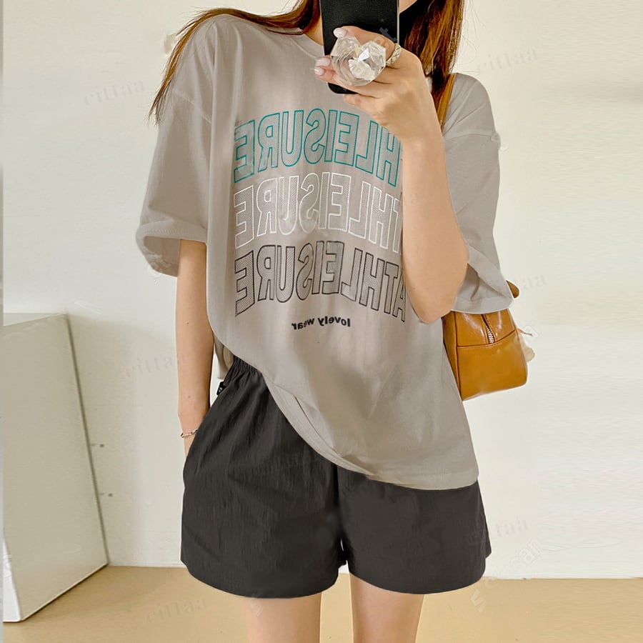 Y-4668 2025夏新作♡【上下セット】ATHLEISUREロゴショートパンツセットアップ ベージュ 0708