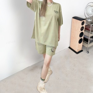 Y-4674 2025夏新作♡【上下セット】ランダムラベル半袖セットアップ カーキ 0717