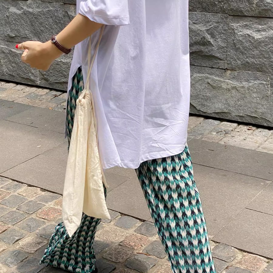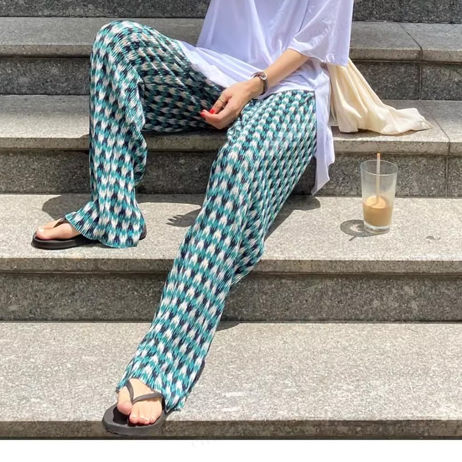 一点投入でオシャレ感UPするレトロ柄プリーツパンツ♡