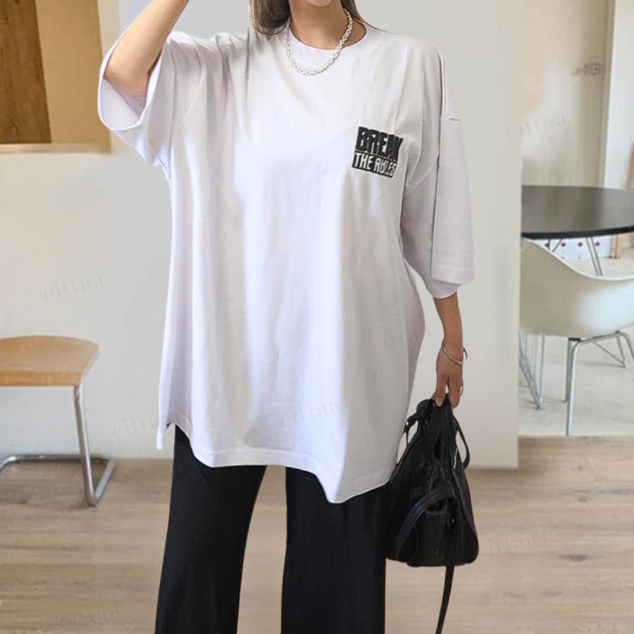 【即納】Y-4680 2026春夏新作♡BREAKダメージロゴ半袖Tシャツ ホワイト 0725