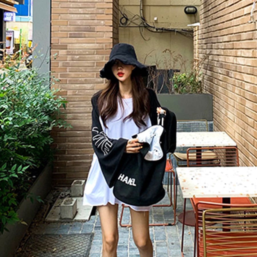 モノトーンの配色でどんなコーデにも合わせやすく、1枚でラフに着こなせる万能アイテム♪