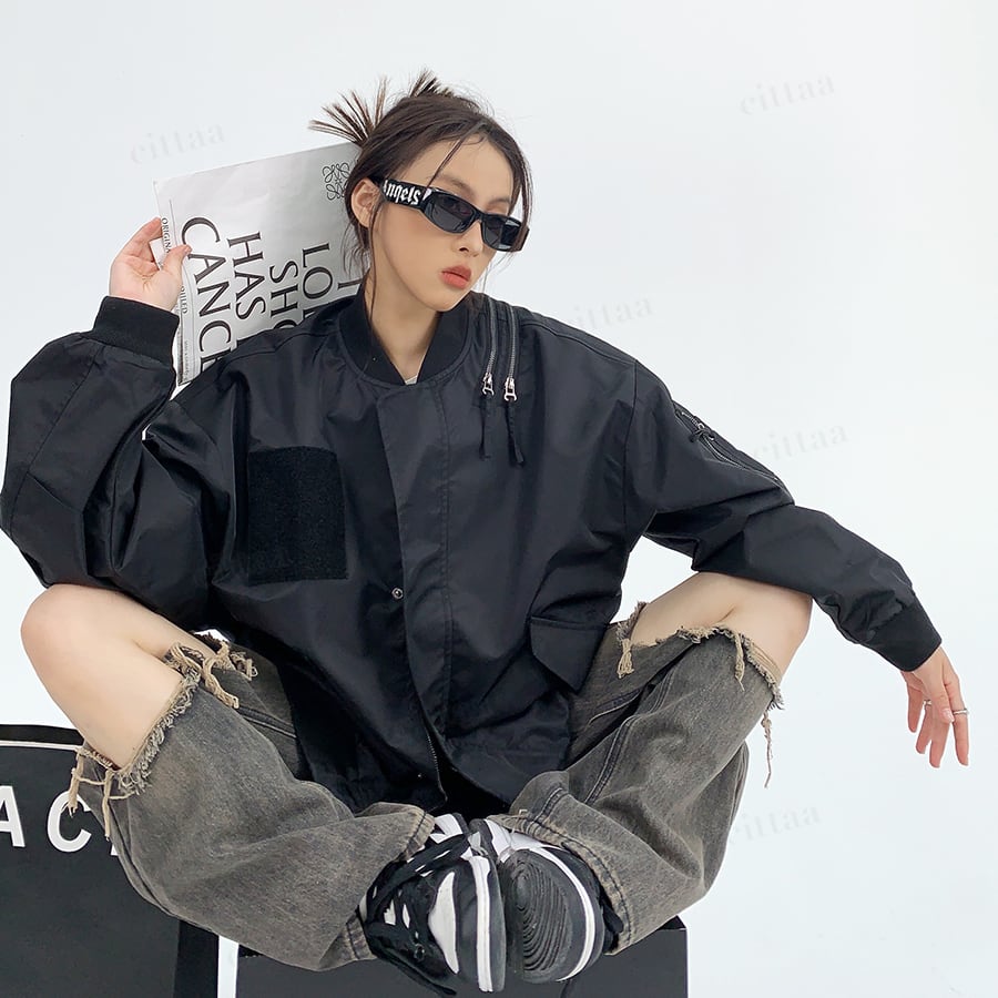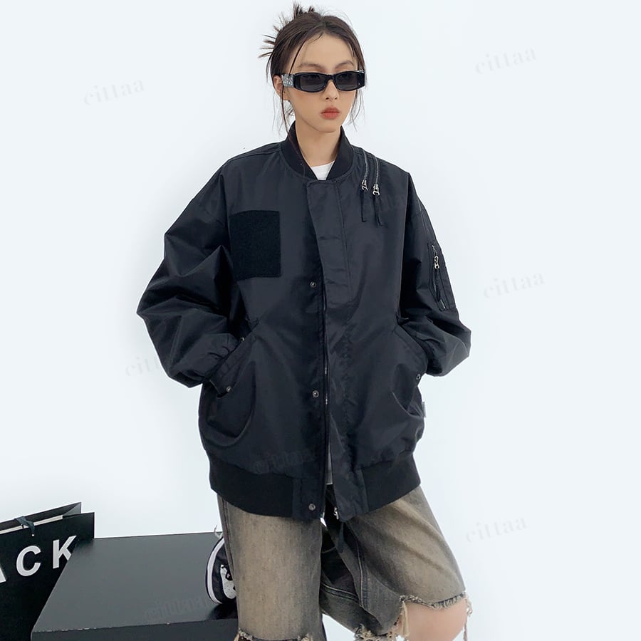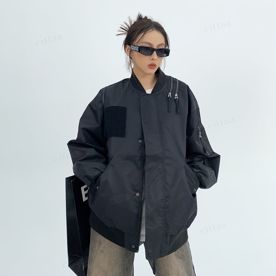 C-340 2025秋新作♡ショルダージップデザインMA-1ブルゾン ブラック 0808