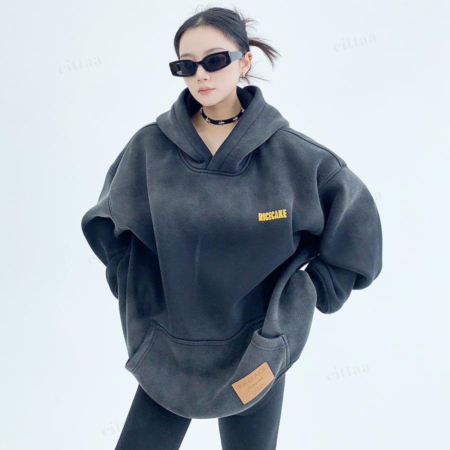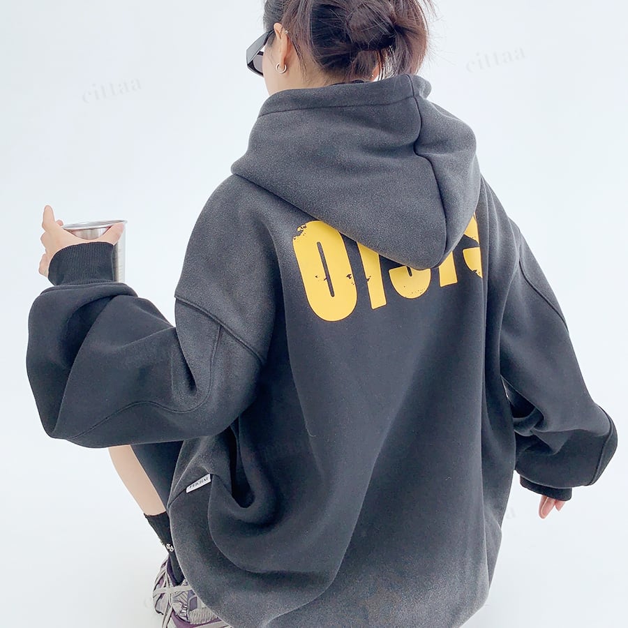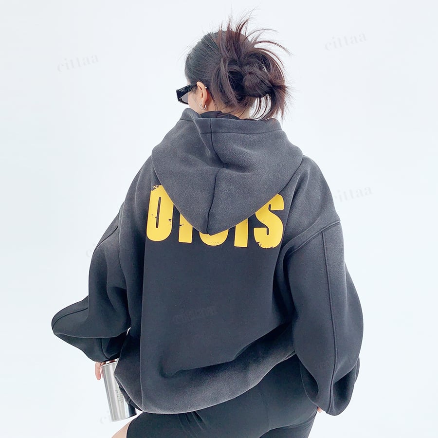 【即納】【早割限定特典10%OFF】D-388 2025秋新作♡OISISヴィンテージウォッシュロゴカラーフーディー ブラック