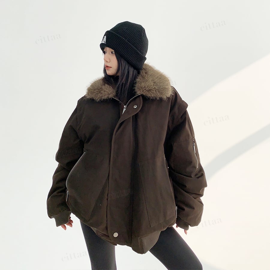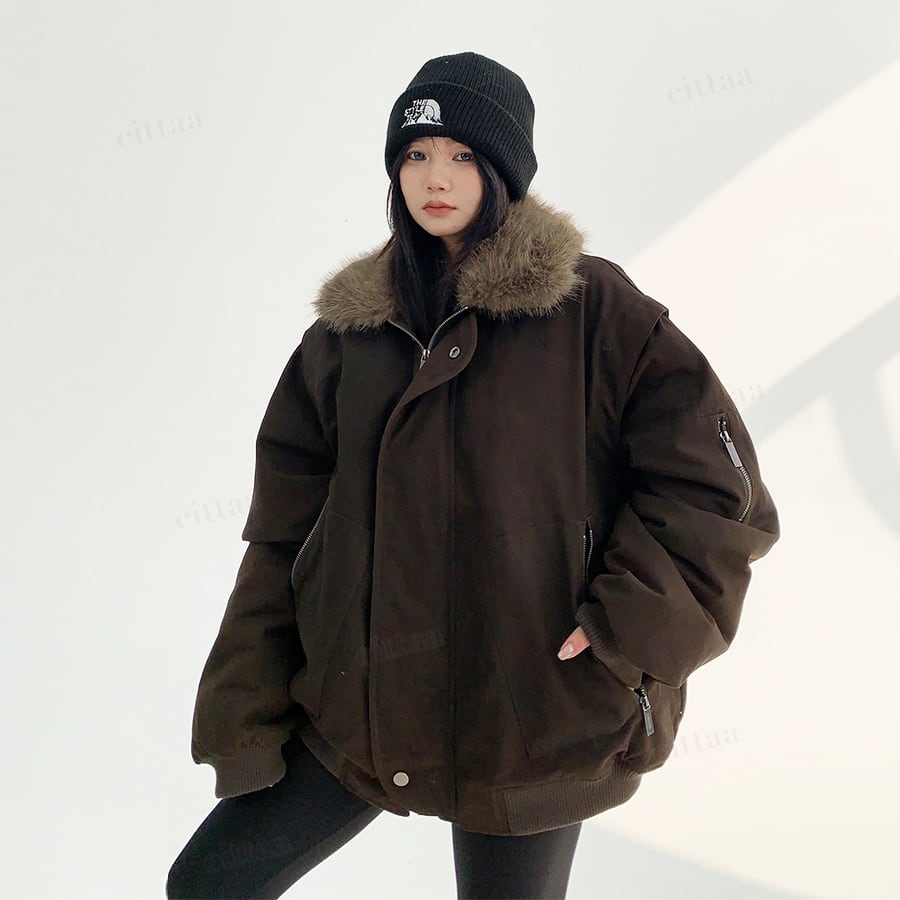 ★予約★D-396 2025秋新作♡取り外し可能ファー付きMA-1風ミリタリーダウンコート ダークブラウン