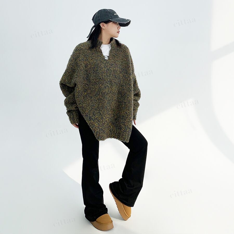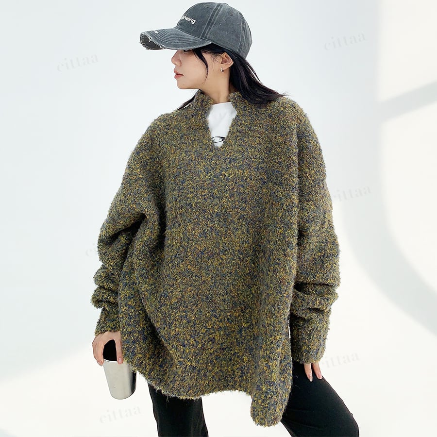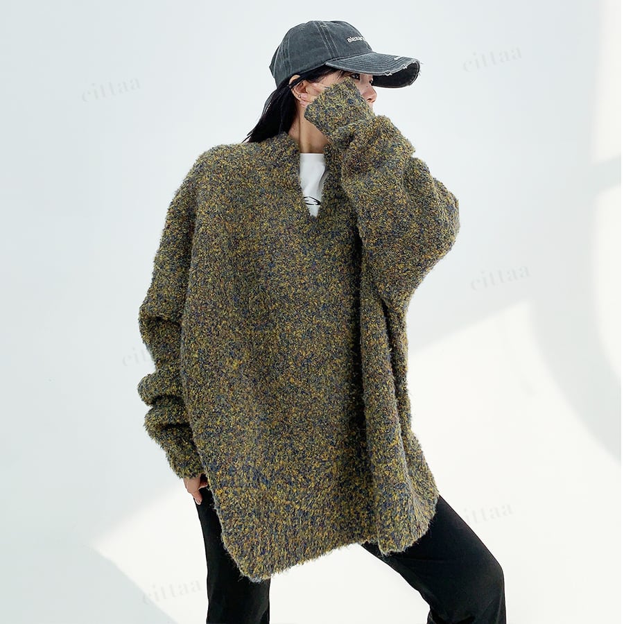 キーネックデザインが顔まわりをすっきり見せてくれる、オーバーサイズニット♡
