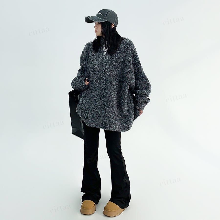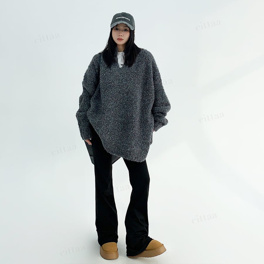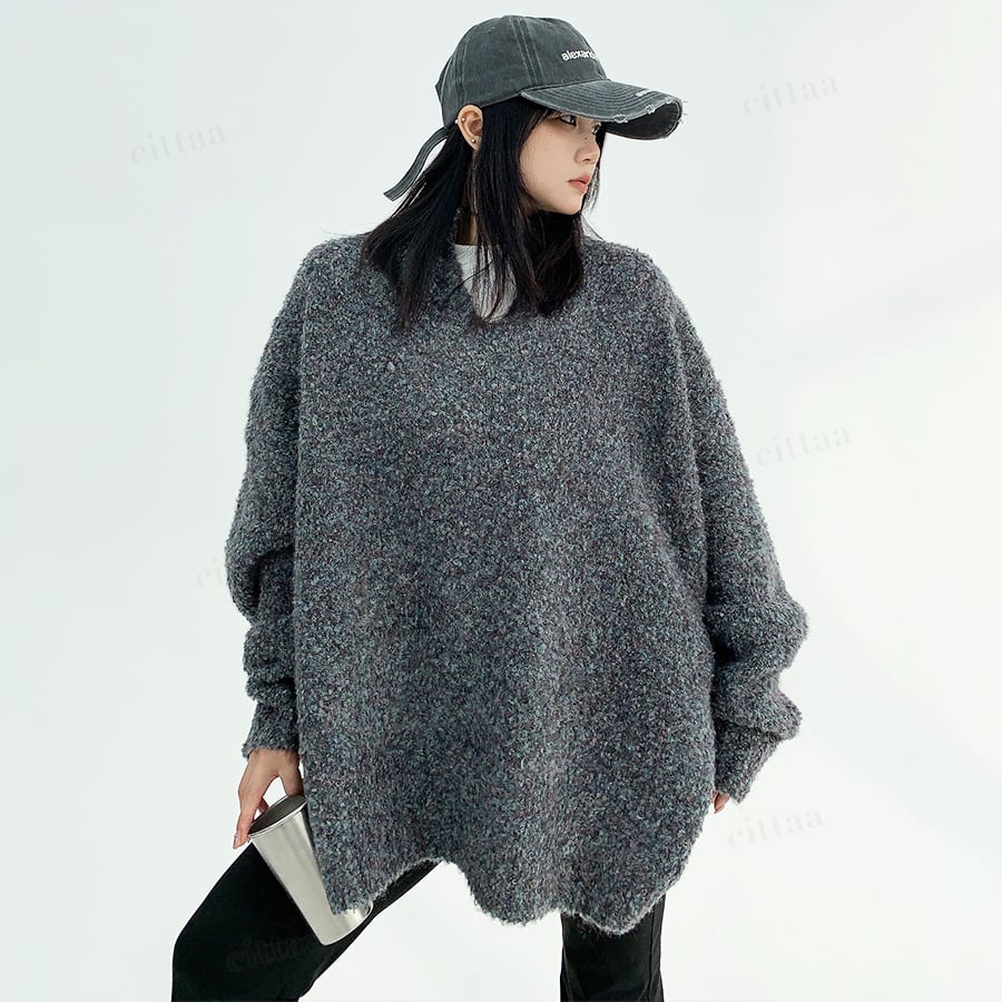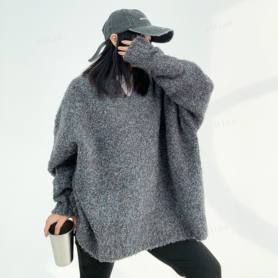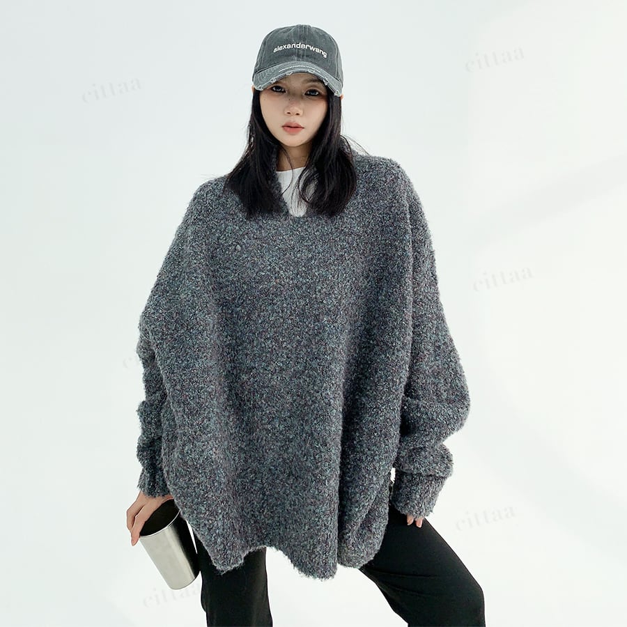 キーネックデザインが顔まわりをすっきり見せてくれる、オーバーサイズニット♡