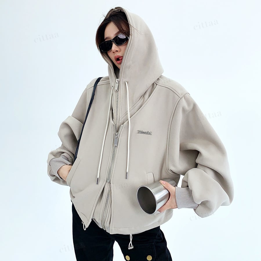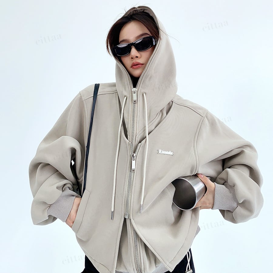 重ね着風デザインが旬♡こなれ感漂うフェイクレイヤードジップパーカー♡