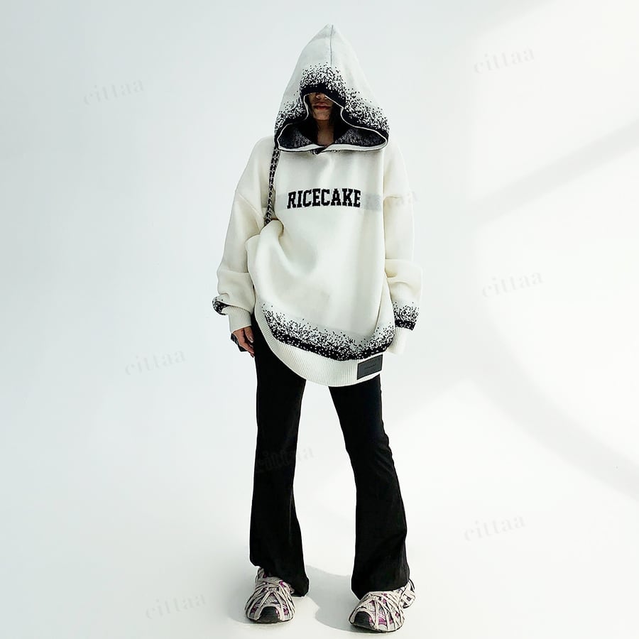【即納】【早割限定特典10%OFF】C-376 2025秋新作♡RICECAKE粉雪グラデニットフーディー ホワイト 0829