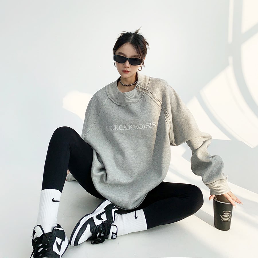 アシンメトリーなジップデザインで差がつく刺繍ロゴスウェット♡