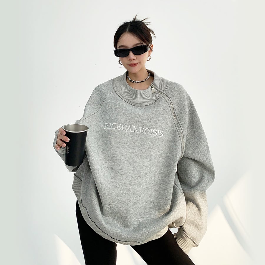 ★予約★D-413 2025秋新作♡RICECAKEアシンメトリージップデザインスウェット グレー