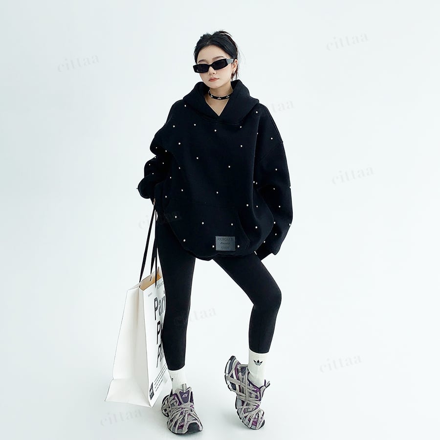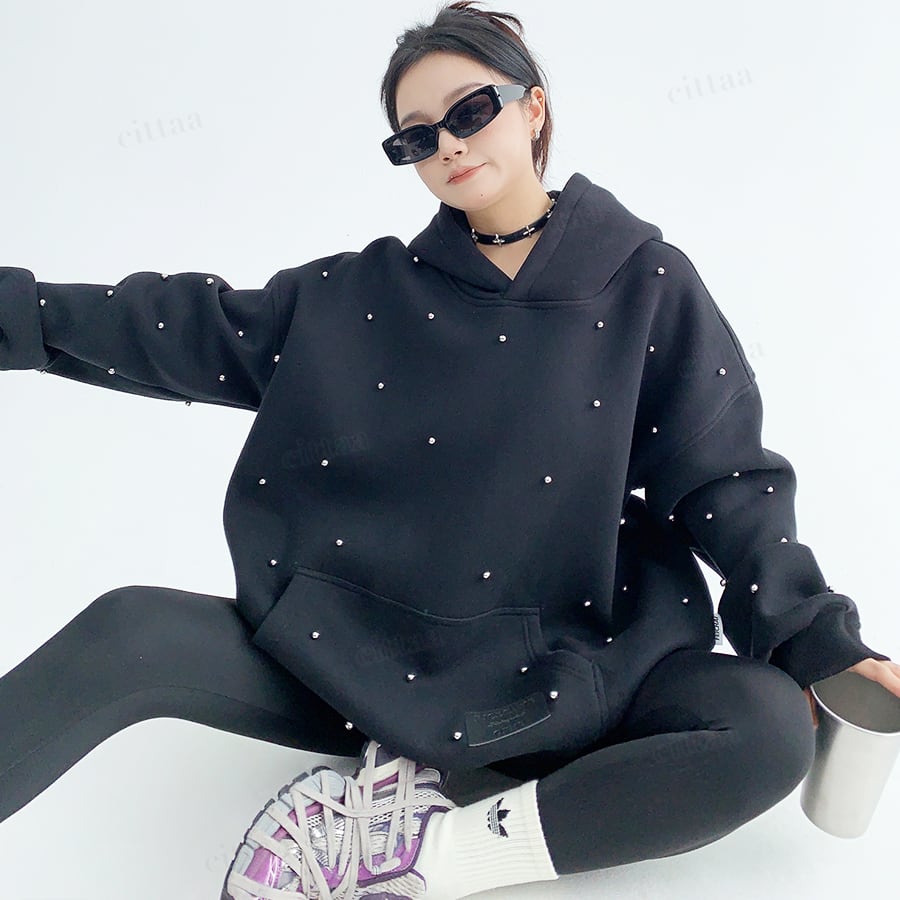 ランダムに散りばめられたスタッズデザインがポイントのスウェットフーディー♡
