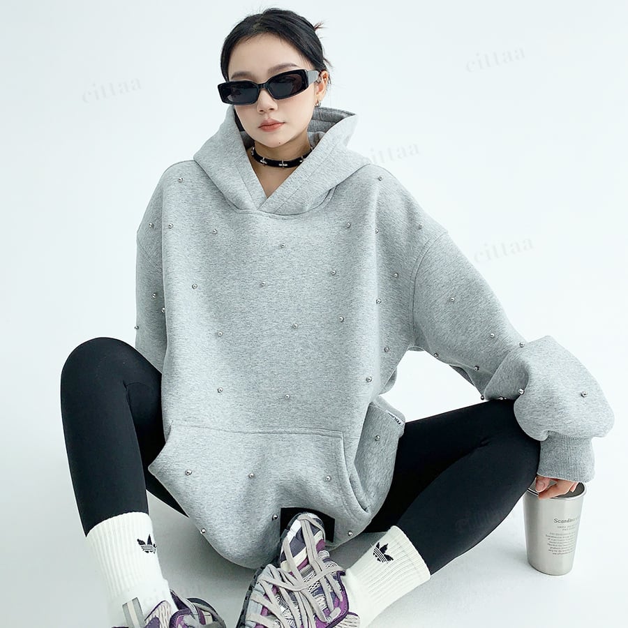 ランダムに散りばめられたスタッズデザインがポイントのスウェットフーディー♡