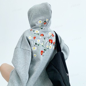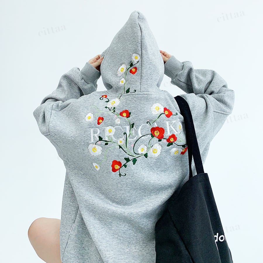 後ろ姿まで映えるフラワー刺繍デザインフーディー♡