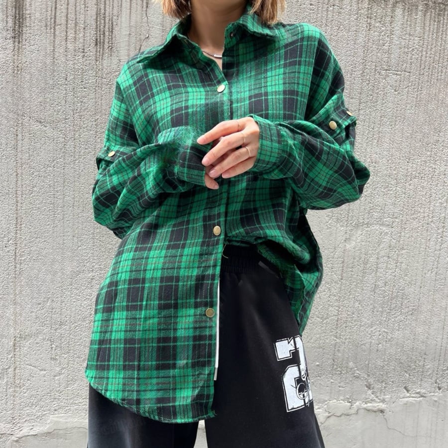Y-4709 2025秋新作♡2wayカットアウトチェックシャツ グリーン 0902