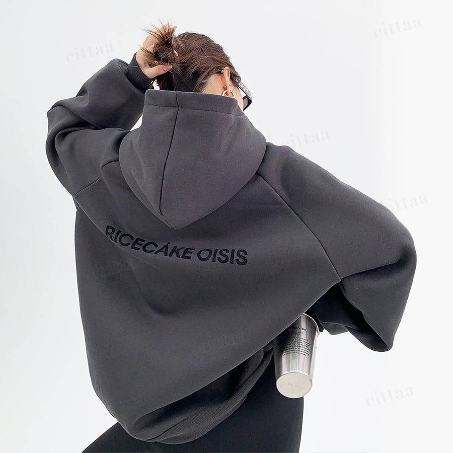 ★予約★【早割限定特典10%OFF】D-423 2025秋新作♡RICECAKEバックロゴラグランフーディー ダークグレー
