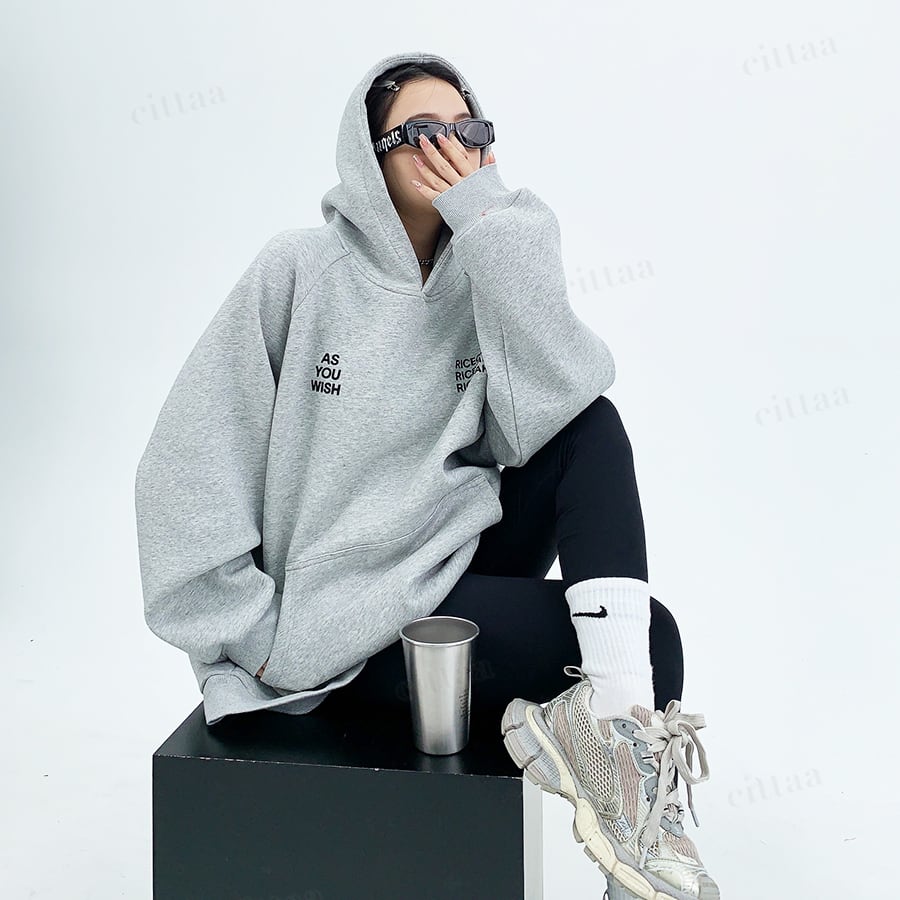 ★予約★【早割限定特典10%OFF】D-423 2025秋新作♡RICECAKEバックロゴラグランフーディー ライトグレー