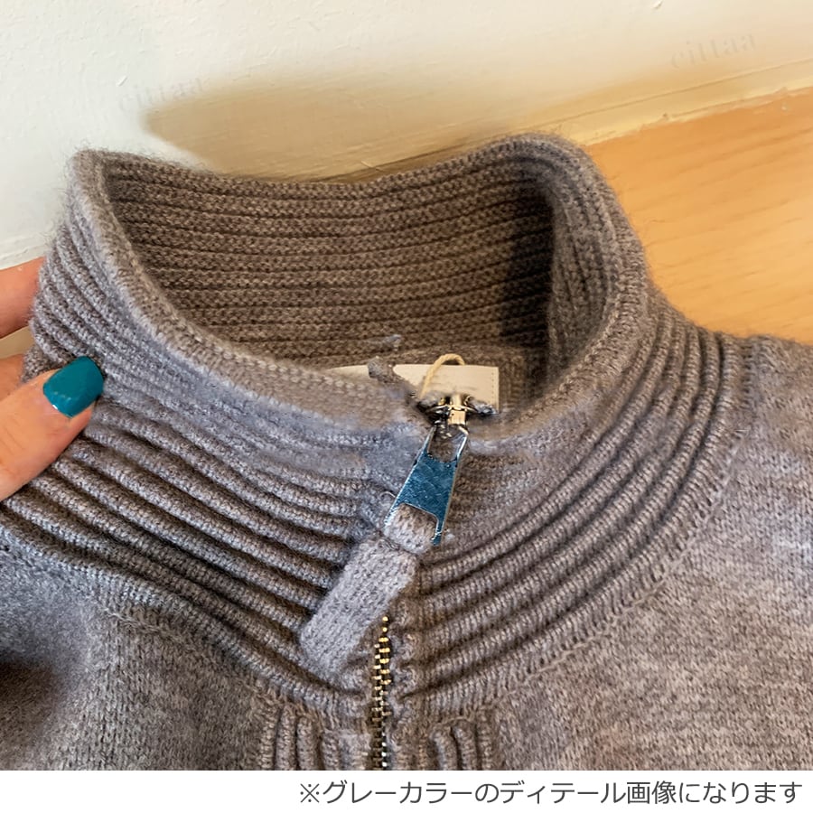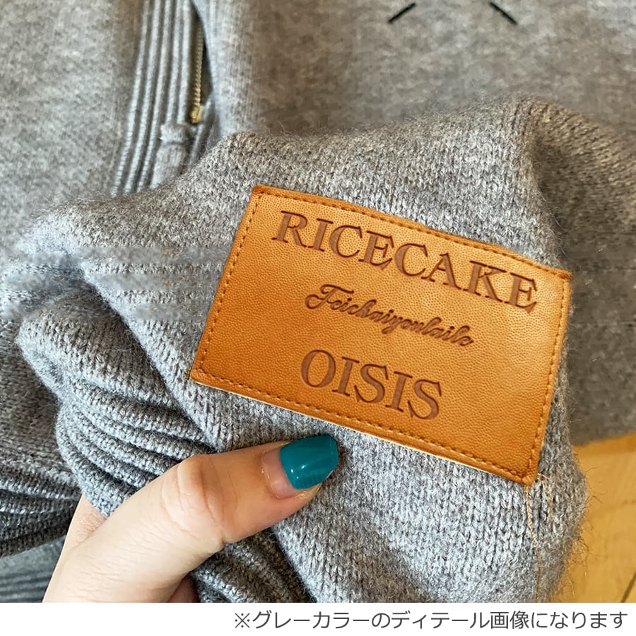フェイクレザーラベルがアクセントになった、こなれ感あふれるジップアップニット♡