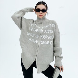 英字プリントが映える、ダブルジップハイネックニットカーディガン♡