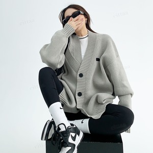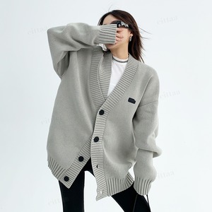 ★予約★D-461 2025秋新作♡ショルダーデザインVネックニットカーディガン グレー