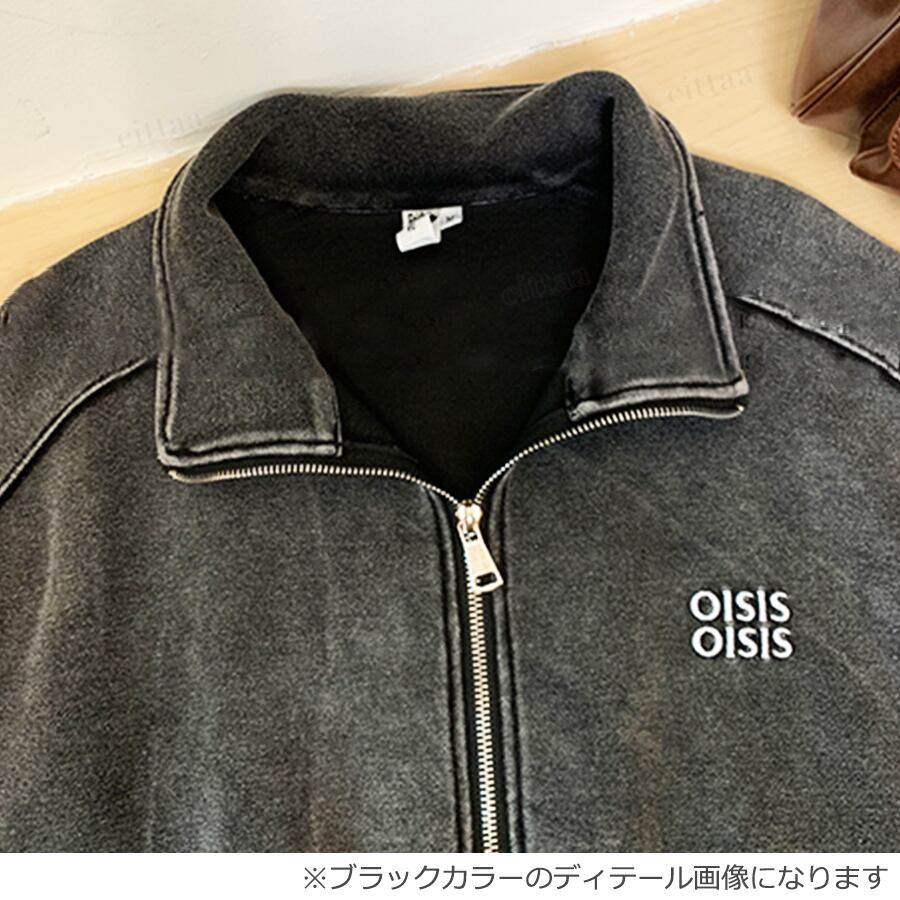 ★予約★D-463 2025秋新作♡OISISショート丈ハイネックジップアップスウェット ライトグレー
