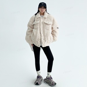 ★予約★D-473 2025秋新作♡袖ラベルボアジャケット ベージュ