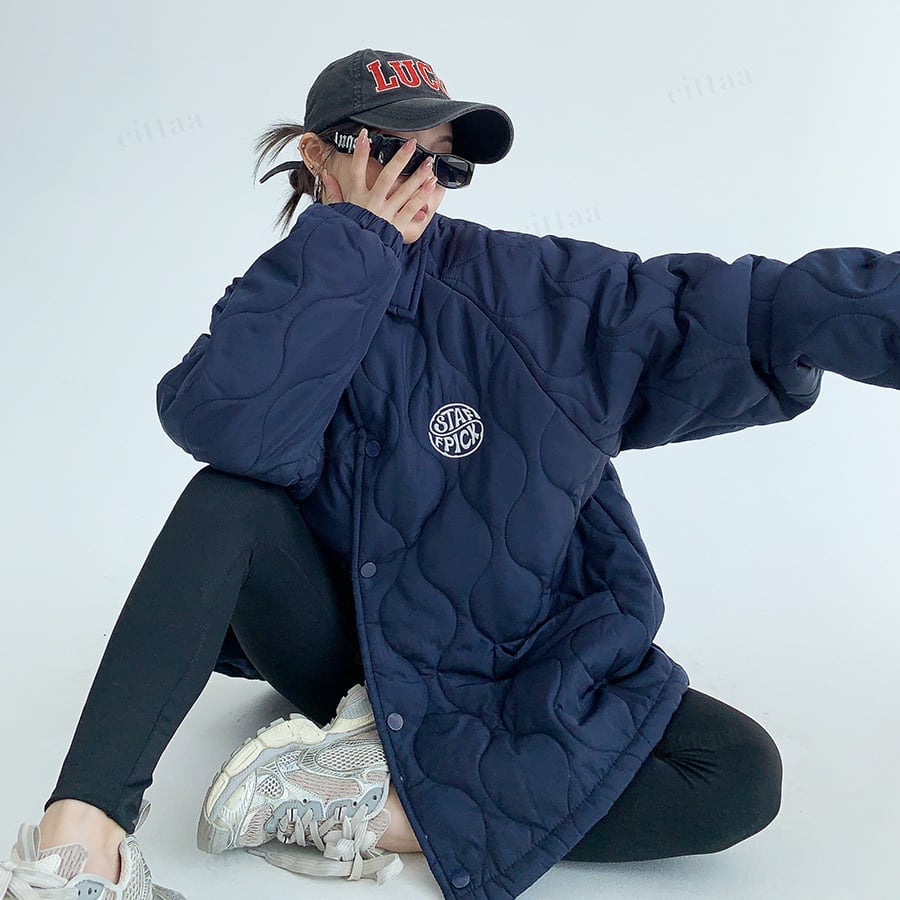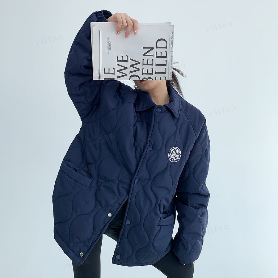 ★予約★D-492 2025秋新作♡STEFFPICK刺繍ロゴ中綿キルティングコート ネイビー