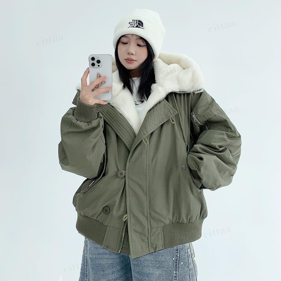 【即納】【限定32%OFF】D-494 2025秋冬新作♡N3Bボアフード付きコート アーミーグリーン