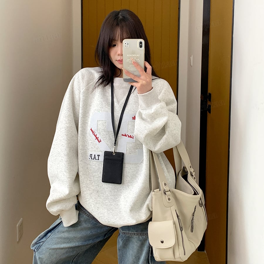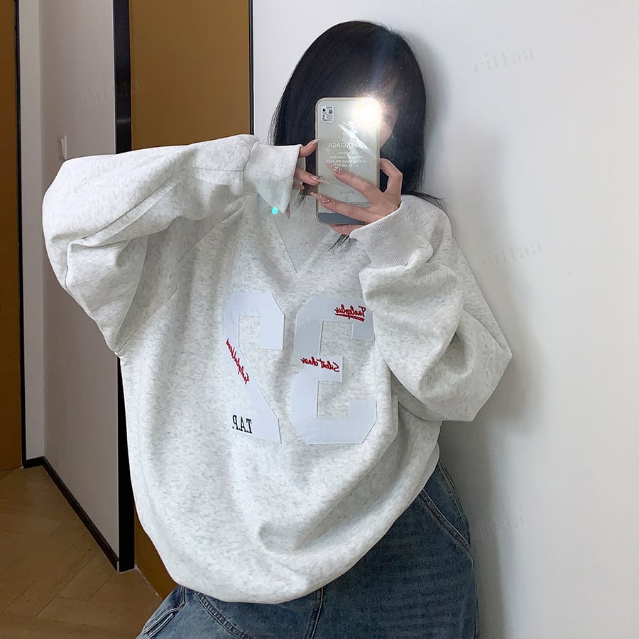 ★予約★D-512 2025秋新作♡32ナンバーロゴワッペンスウェット グレー