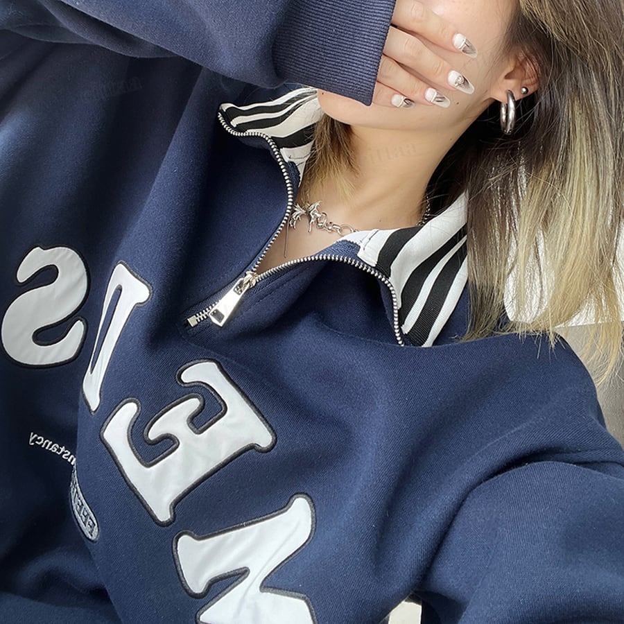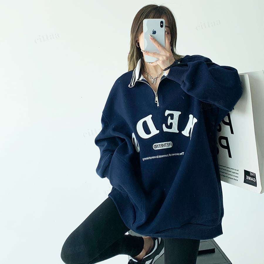 着映えする刺繍ロゴが目を引く、大人カジュアルなハーフジップスウェット♡