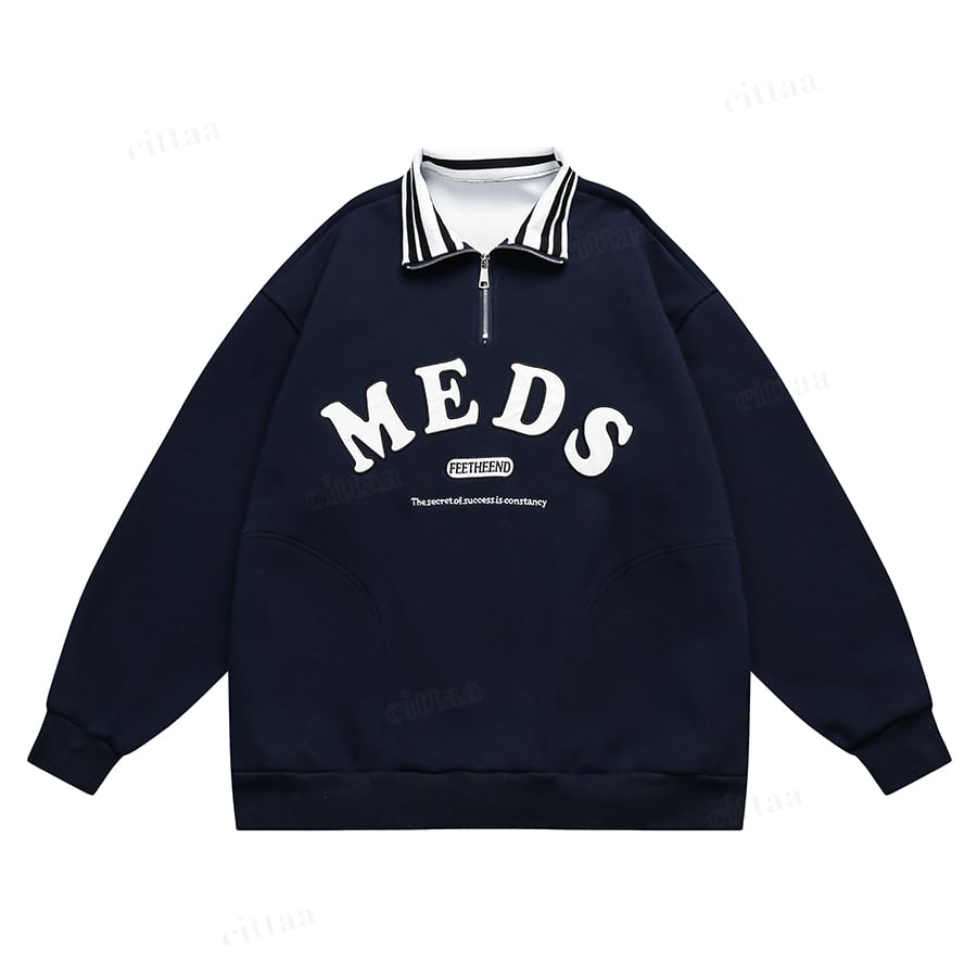 ★予約★D-518 2025秋新作♡MEDS刺繍ロゴハーフジップスウェット ネイビー