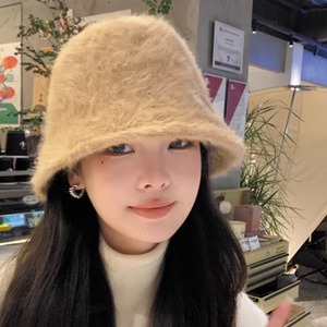 【即納】C-486 2025秋新作♡JISIZANメタルラベル付きラビットファーバケットハット ダークベージュ