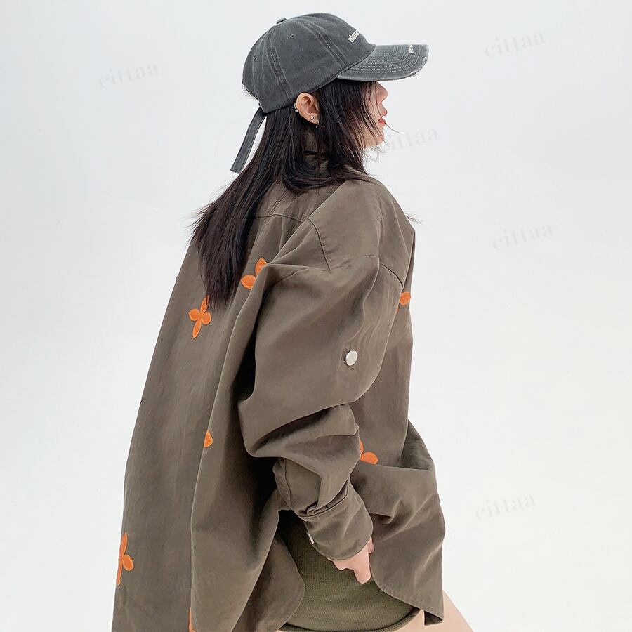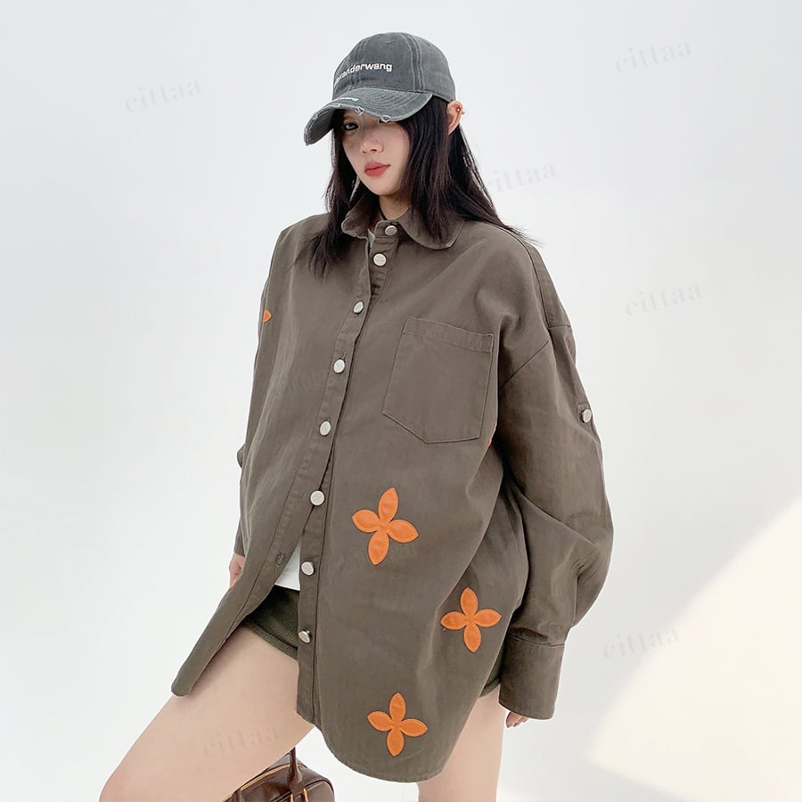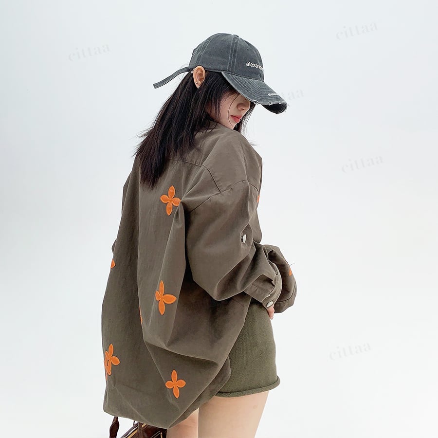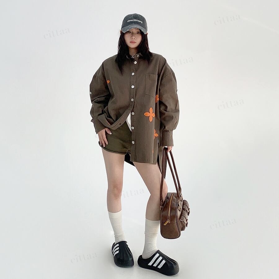 ランダムに散りばめられたフラワーワッペンがポイントのオーバーサイズシャツ♡