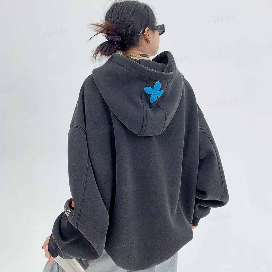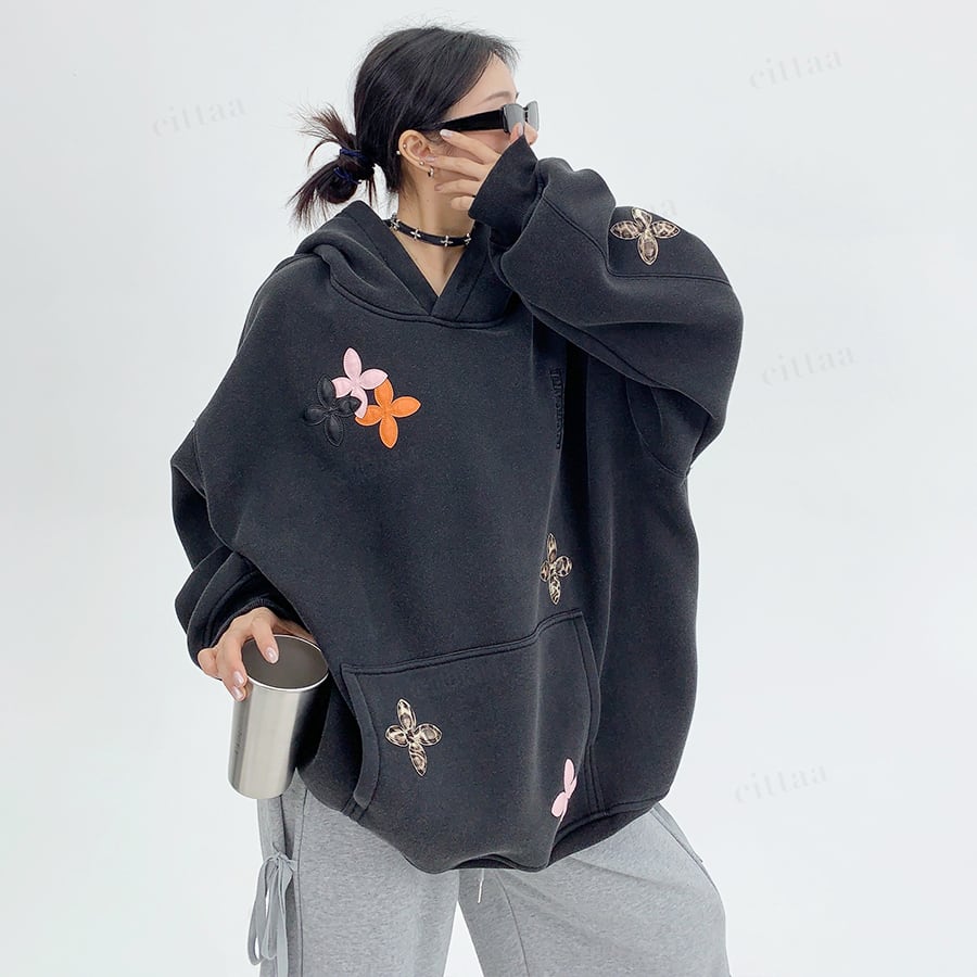 カラフルなフラワーパッチが映える大人の遊び心フーディー♡