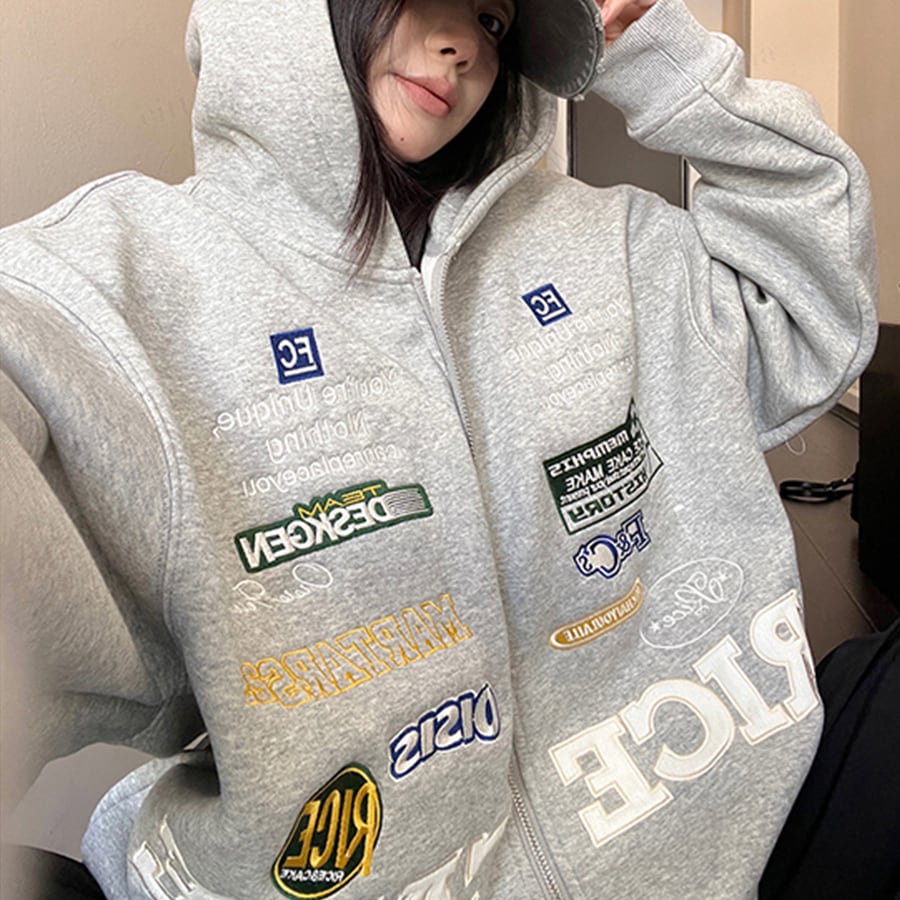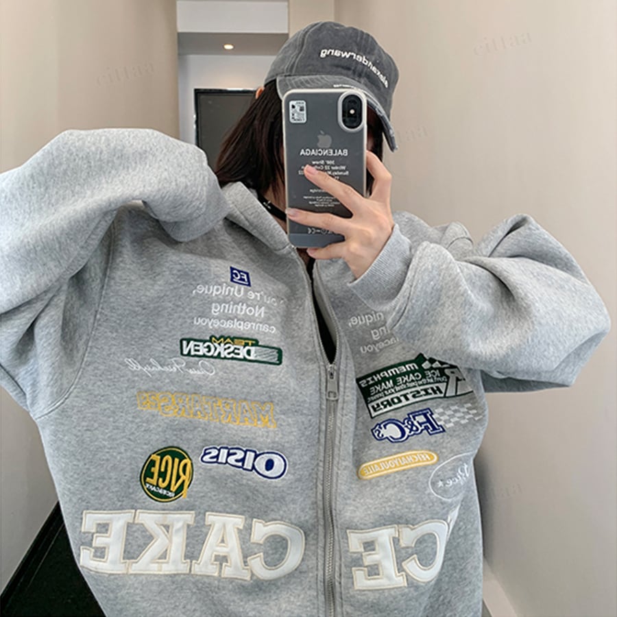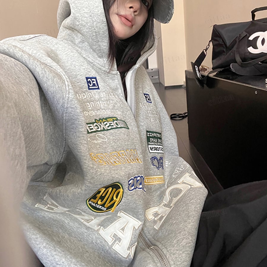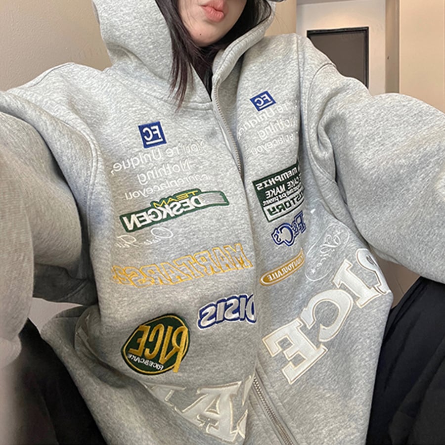 様々なデザインの刺繍ロゴを散りばめたスポンサー風ジップアップパーカー♡