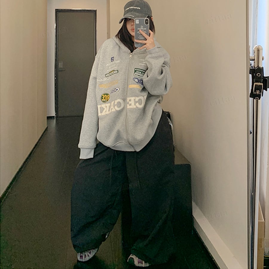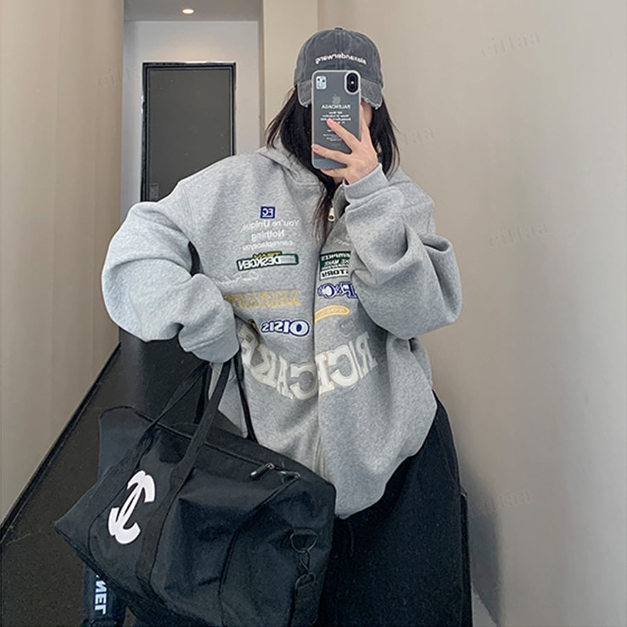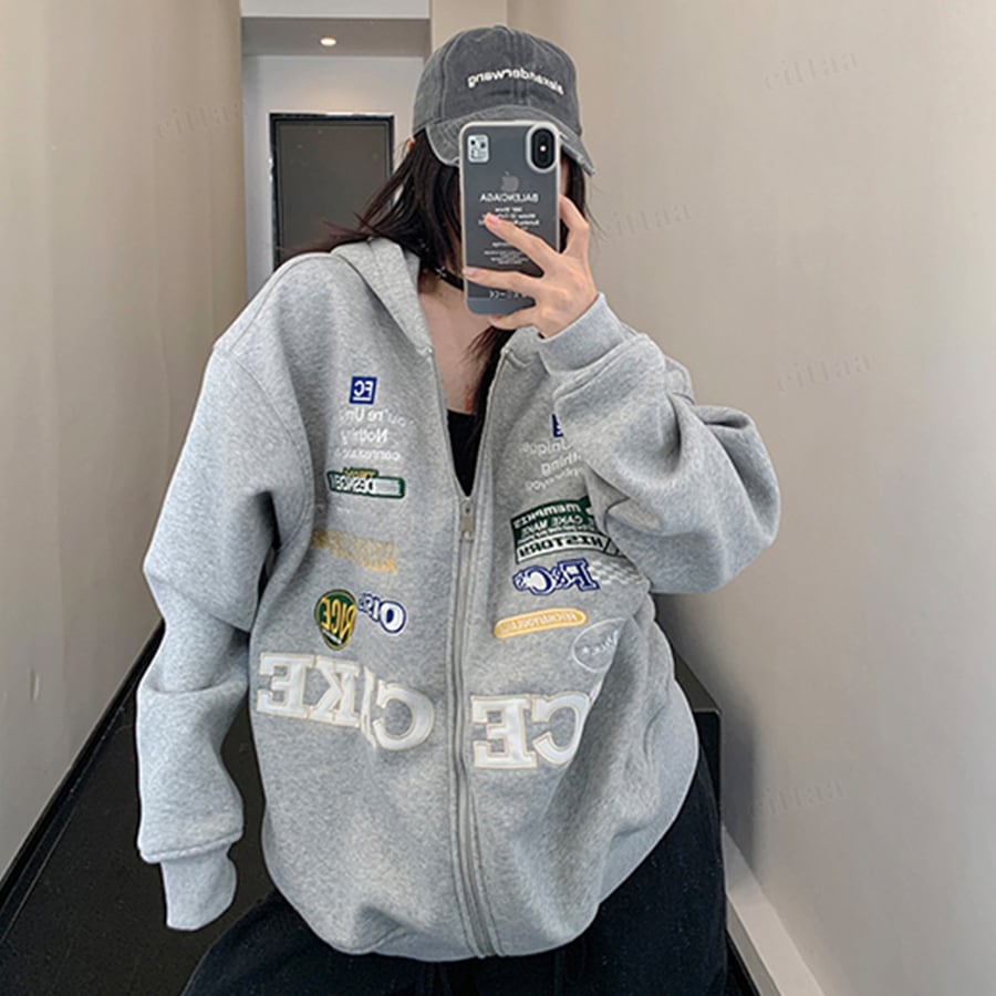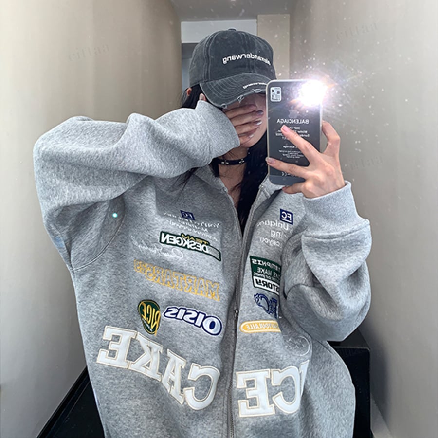 様々なデザインの刺繍ロゴを散りばめたスポンサー風ジップアップパーカー♡