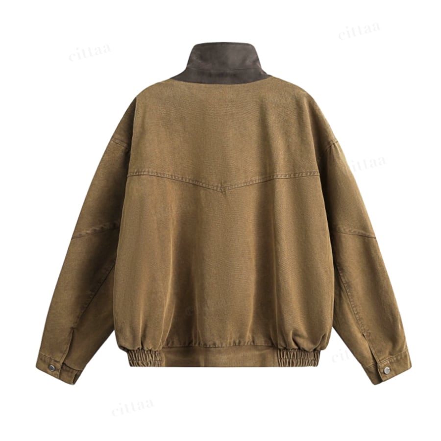 深みのあるカラーリングが、大人のスタイリングに自然とマッチ。首元までしっかり閉じられる仕様で、防寒性にも優れ、肌寒い季節にも頼れる一着です。