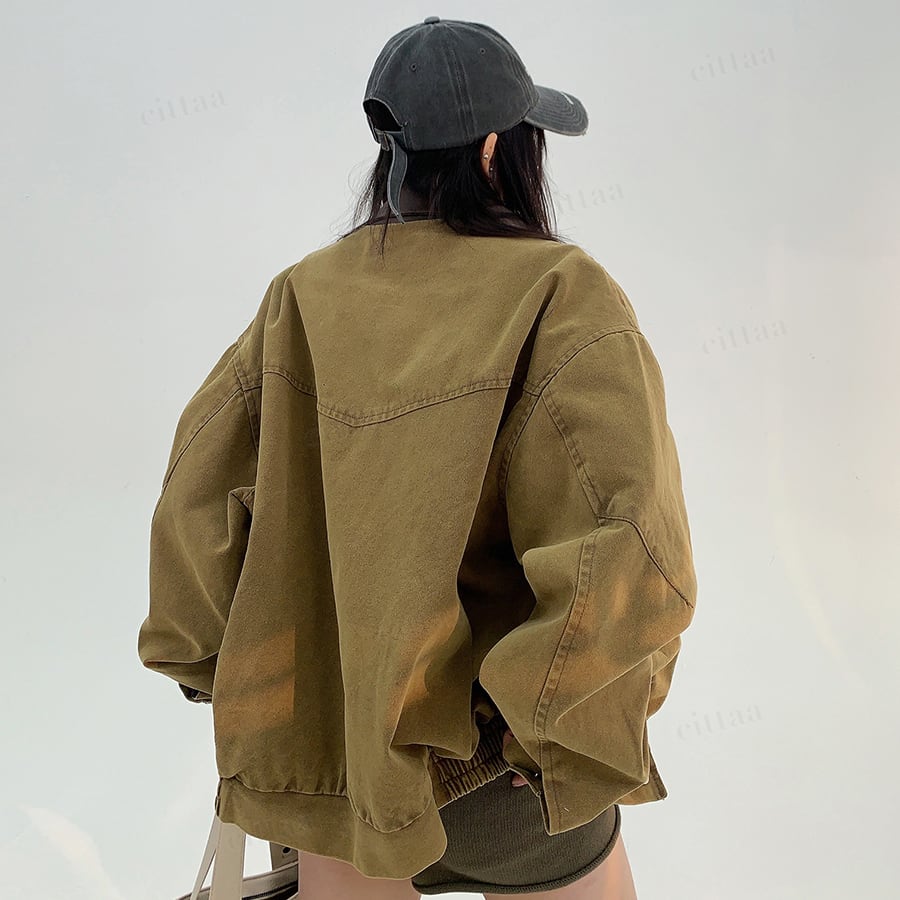 ★予約★D-528 2025秋新作♡BIGポケット配色デザインブルゾン ダークベージュ