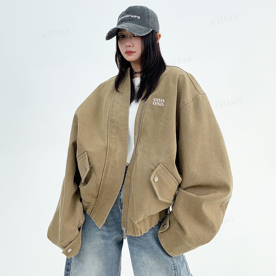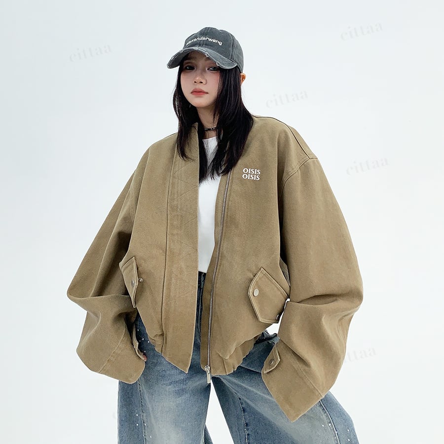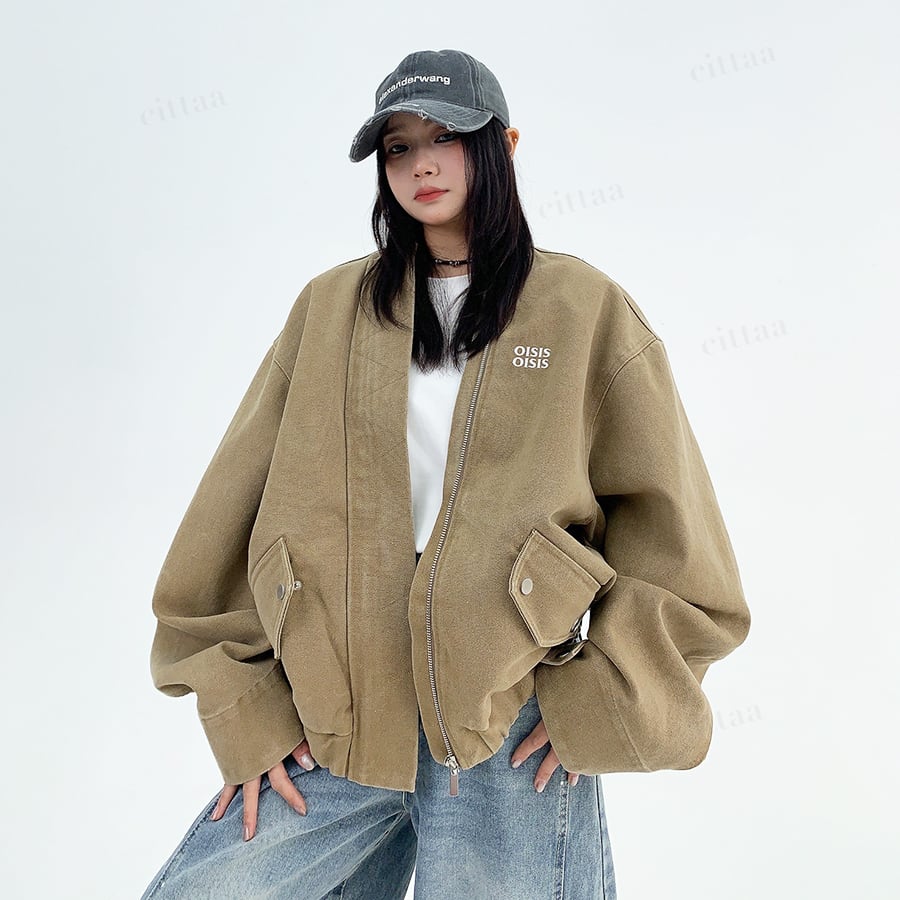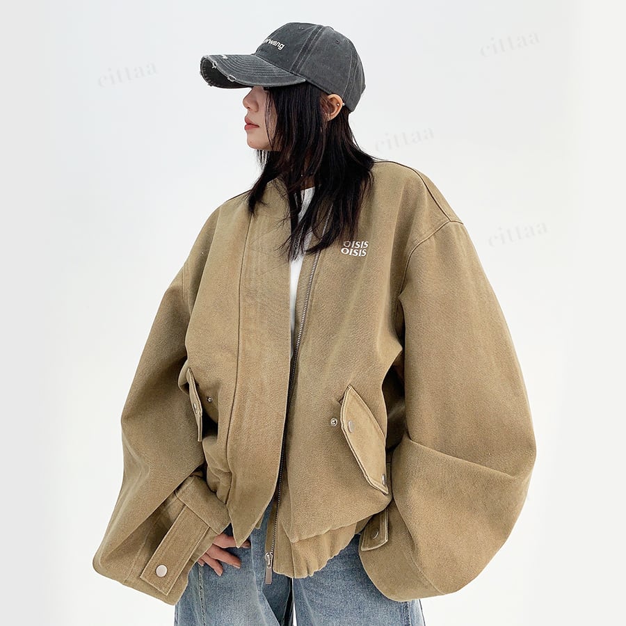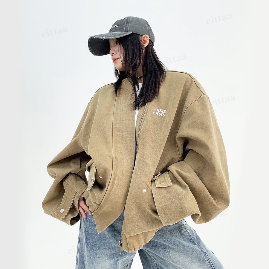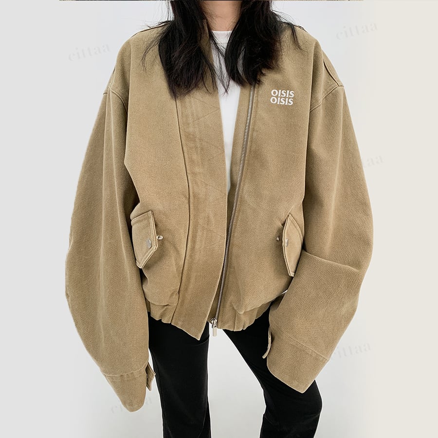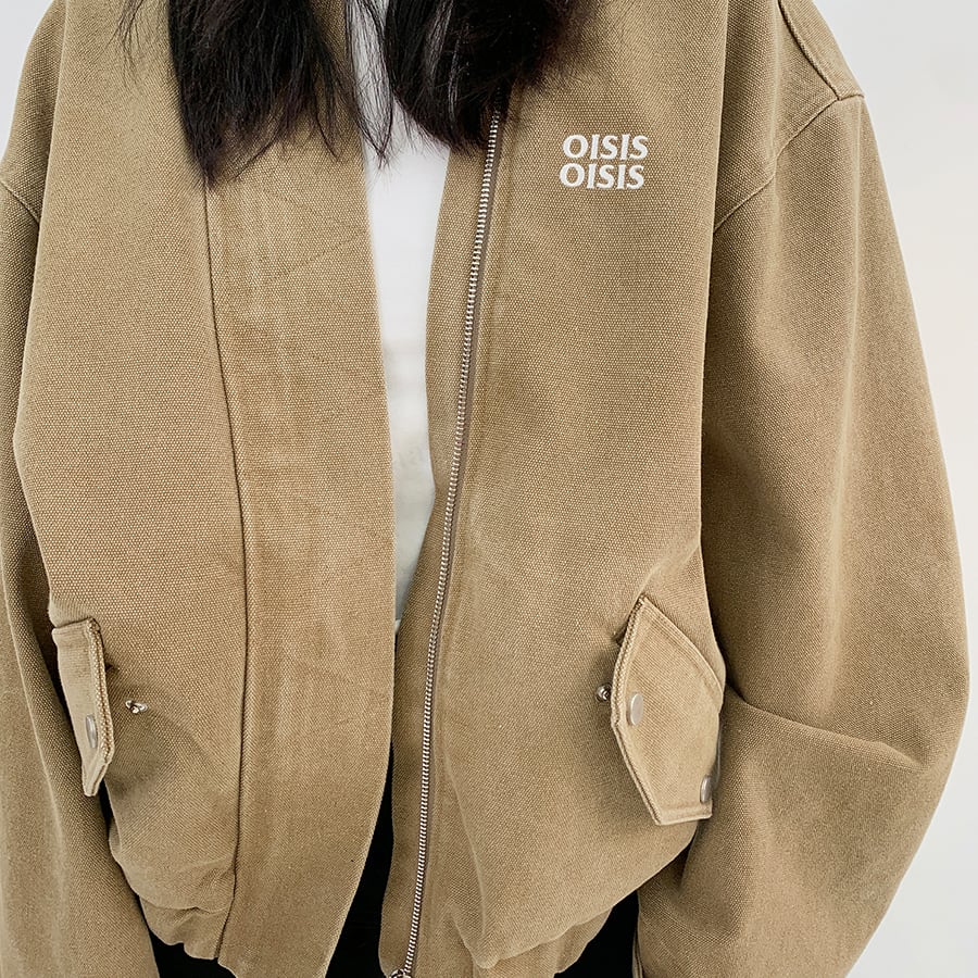 ★予約★D-529 2025秋新作♡OISISヴィンテージウォッシュノーカラーブルゾン ライトベージュ