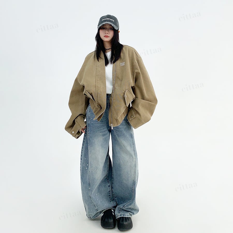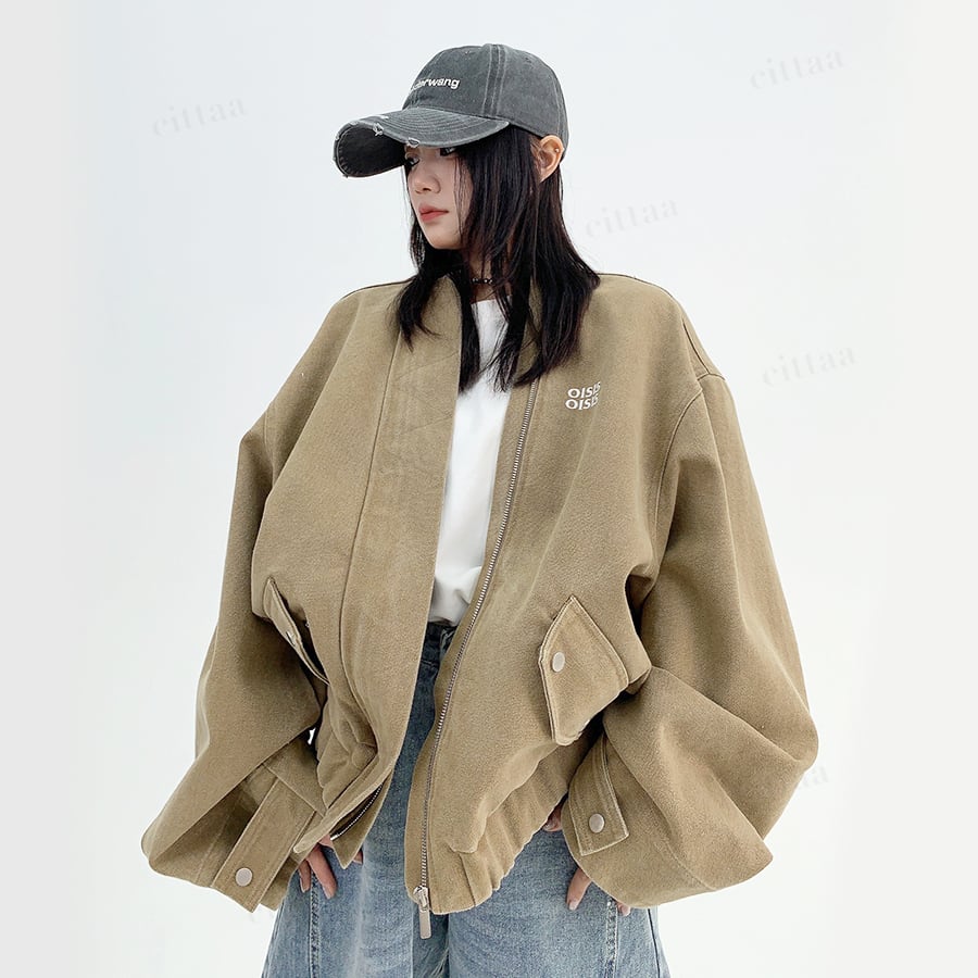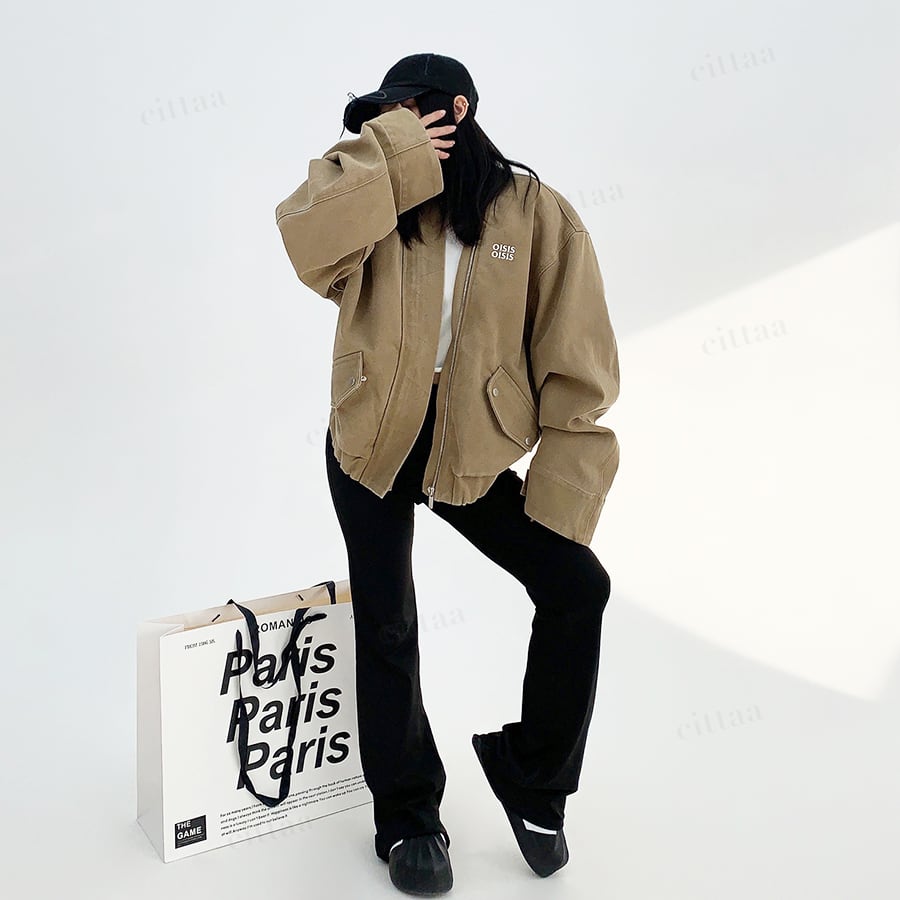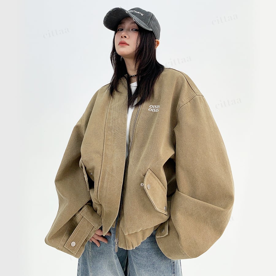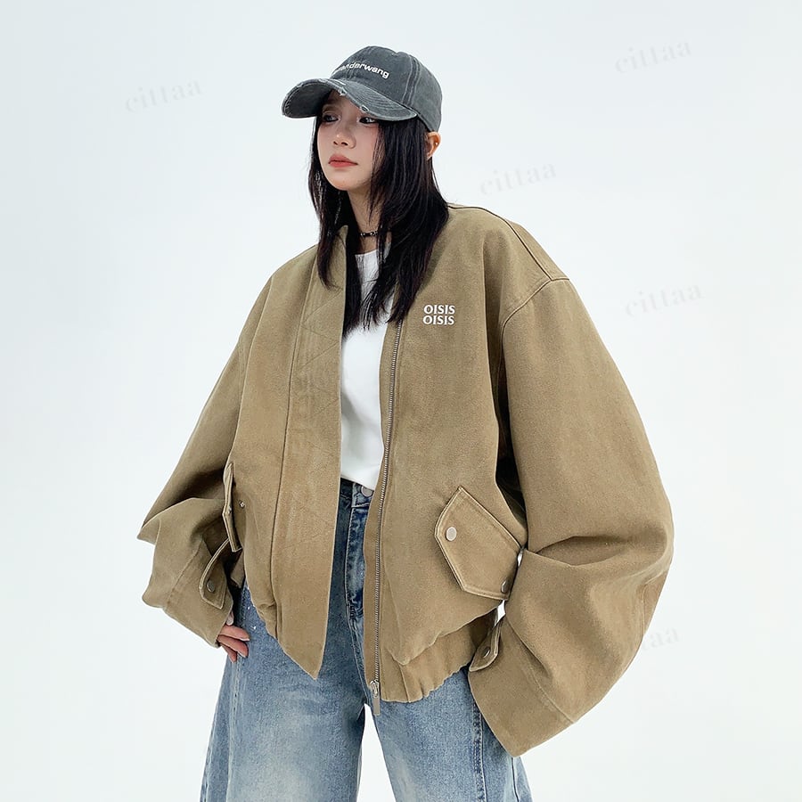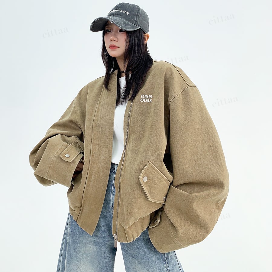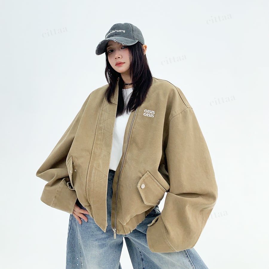 ★予約★D-529 2025秋新作♡OISISヴィンテージウォッシュノーカラーブルゾン ライトベージュ