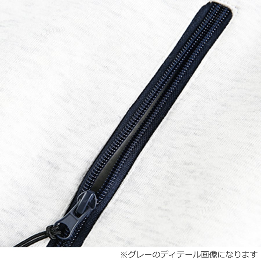 サッと羽織れて気温調整しやすいジップアップタイプ。フロントを閉めるとハイネックになり、首元までしっかり防寒できるのも嬉しいポイント。