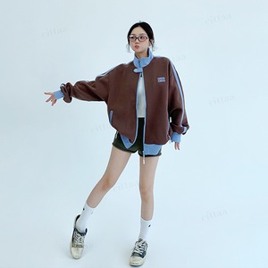 【即納】【早割限定特典10%OFF】D-530 2025秋新作♡OISIS配色トラックジャケット スポーティーブルゾン ブラウン