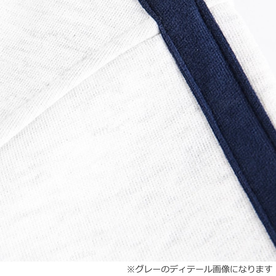 配色ラインが目を引くアクティブな印象の一着。胸元の刺繍ロゴもさりげないアクセントになり、どの角度から見てもお洒落に決まるデザインです。