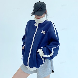 【即納】【早割限定特典10%OFF】D-530 2025秋新作♡OISIS配色トラックジャケット スポーティーブルゾン ネイビー