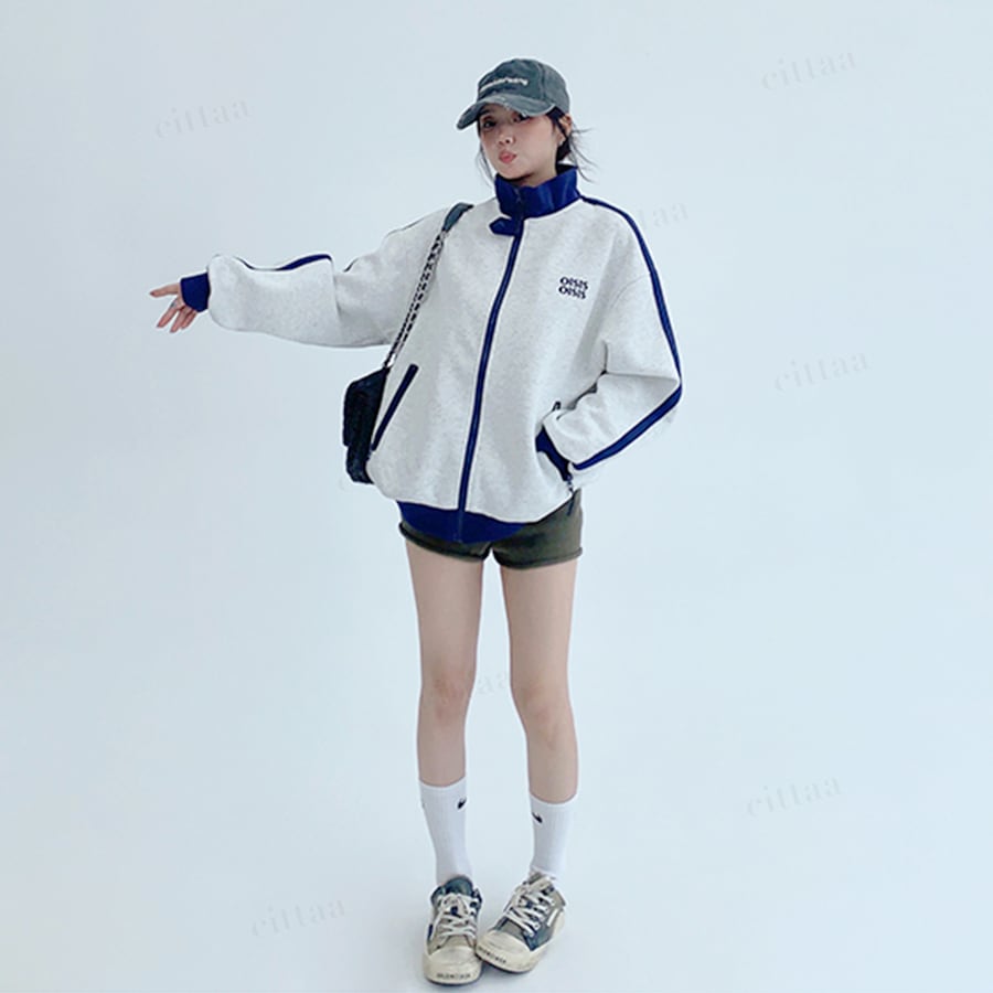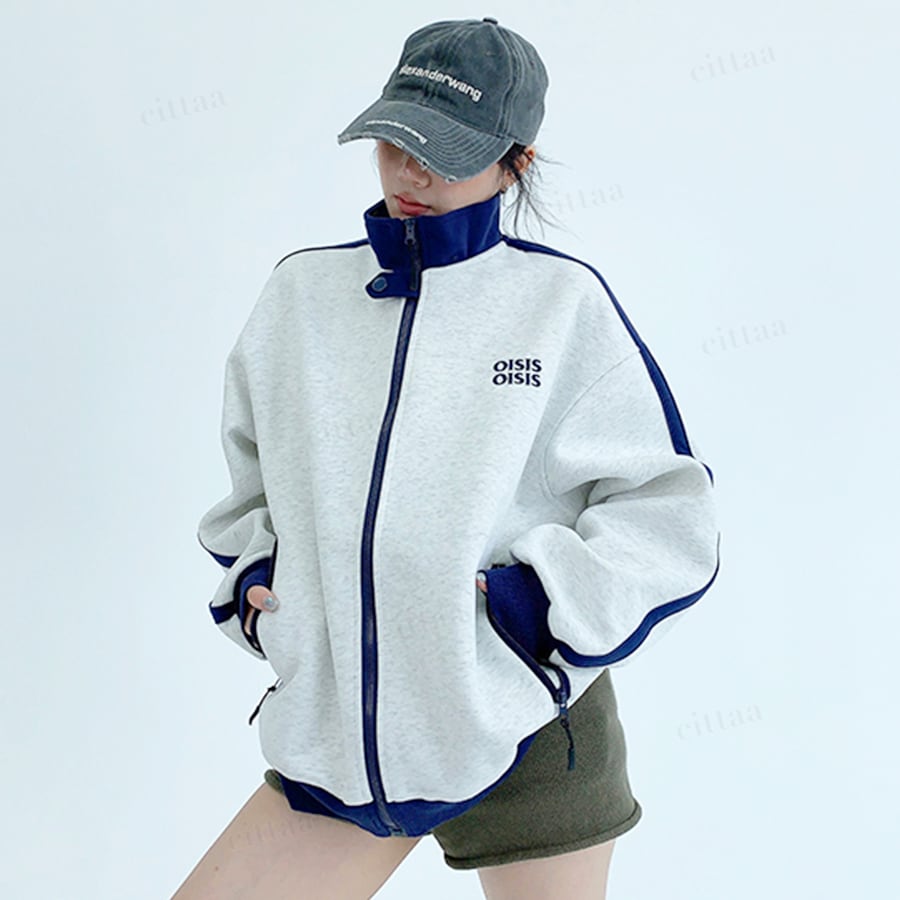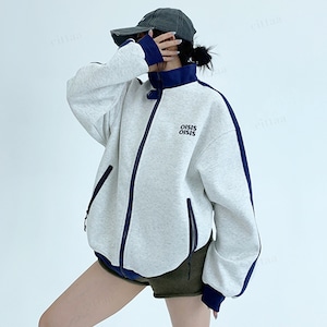 ★予約★D-530 2025秋新作♡OISIS配色トラックジャケット スポーティーブルゾン グレー