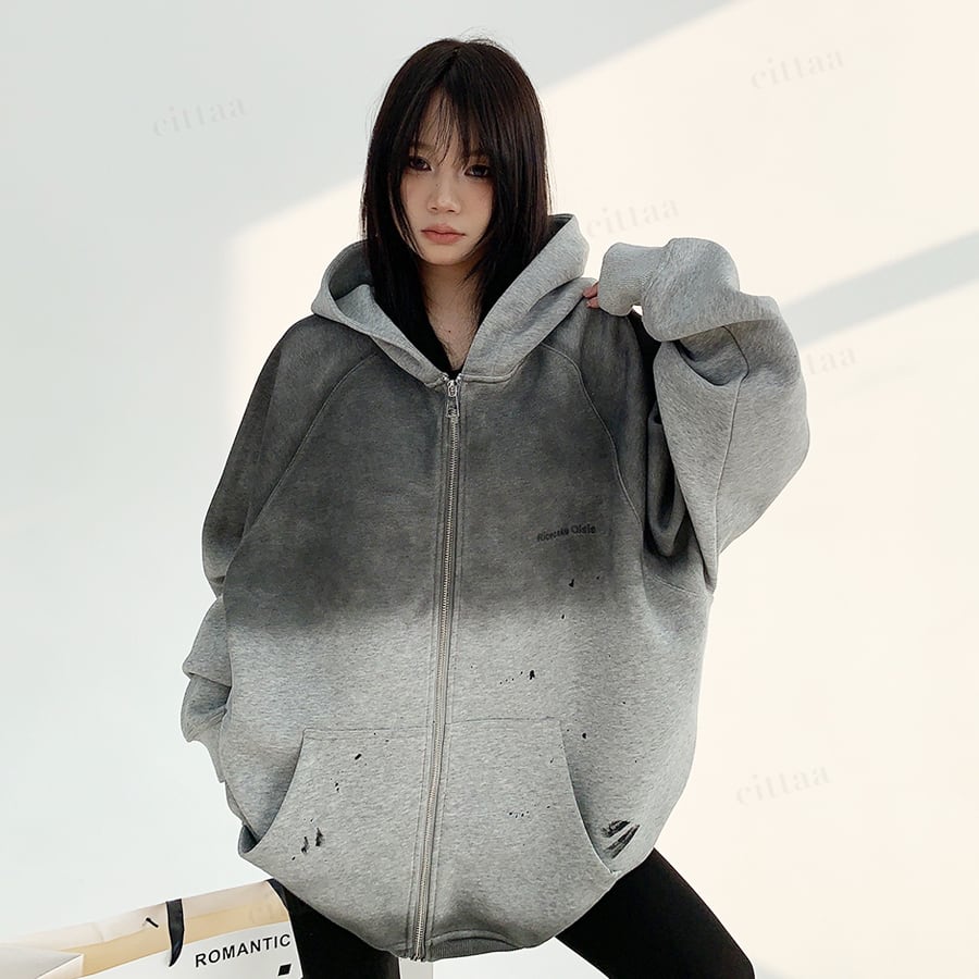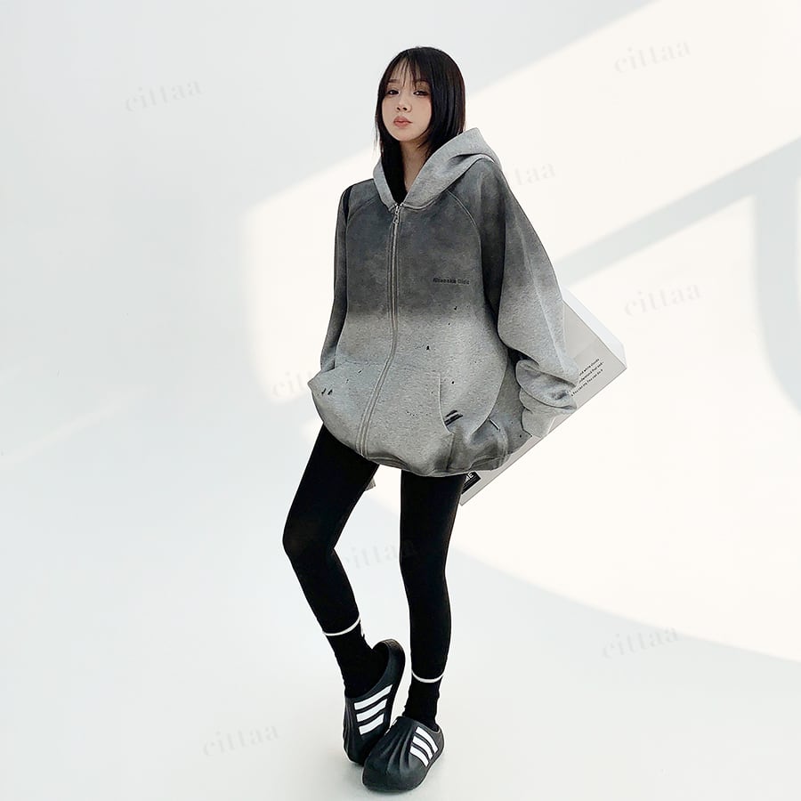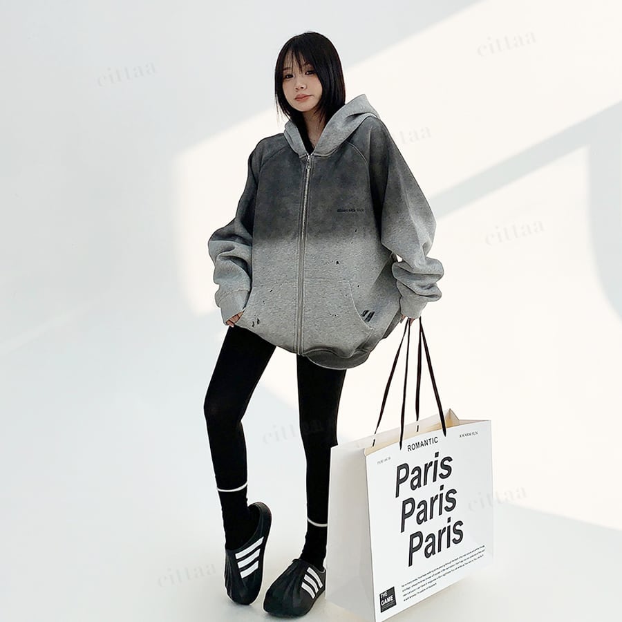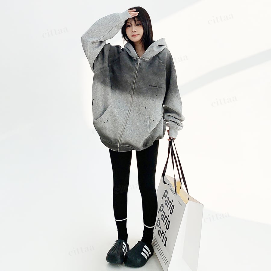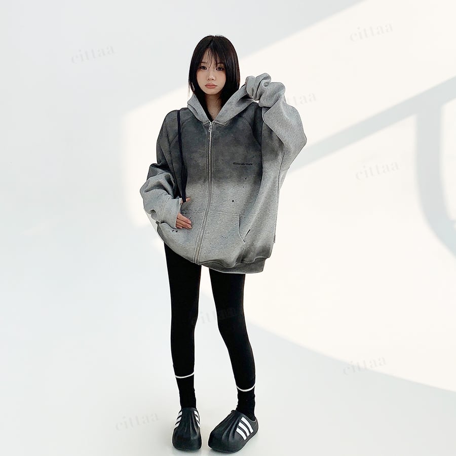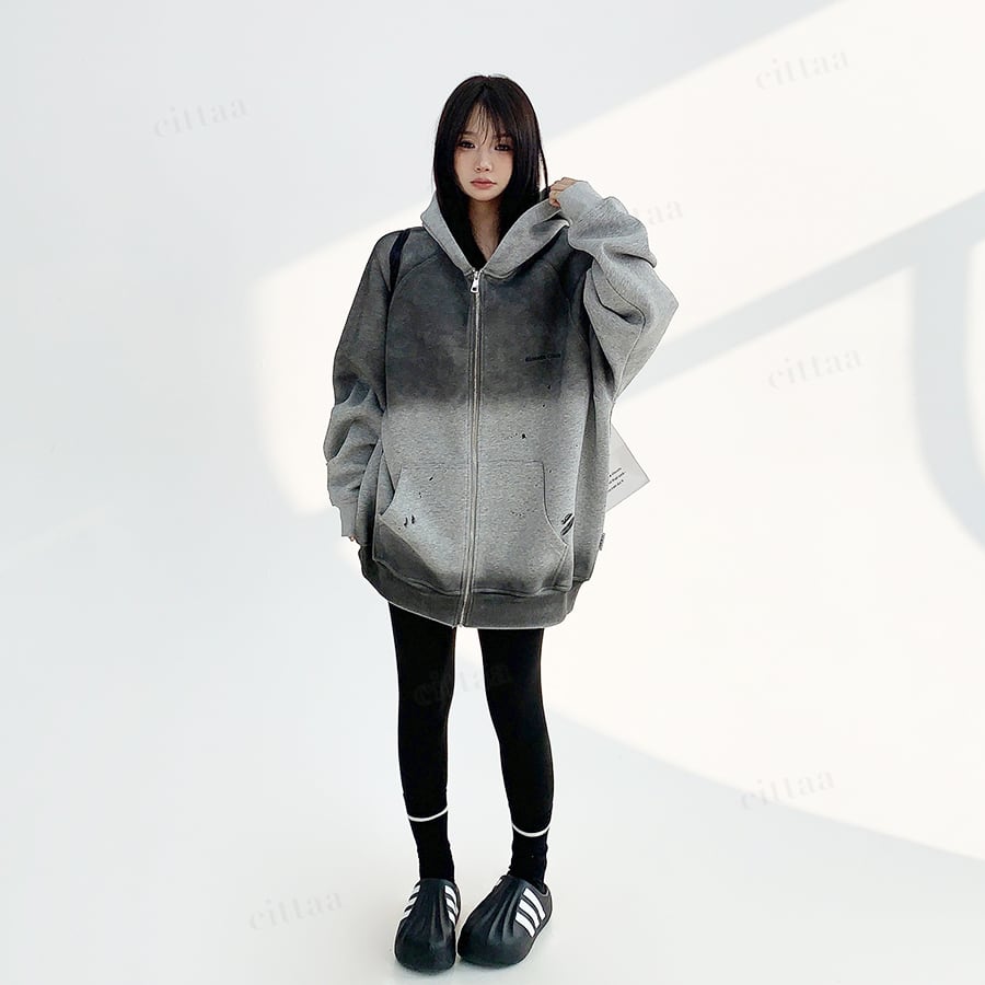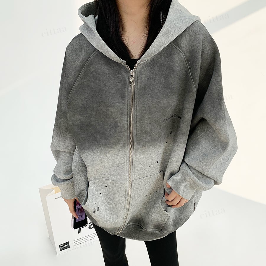 ★予約★D-540 2025秋新作♡ヴィンテージグラデーションジップアップパーカー チャコール